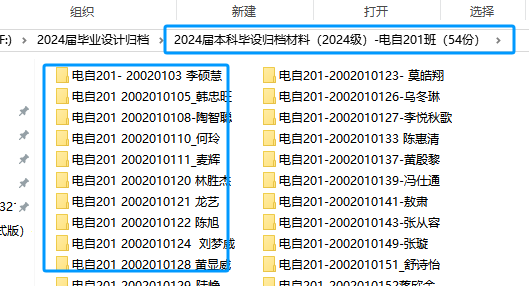 2、各班班长、团支书收齐后,到104找教学秘书拷贝,班级文件夹命名为:2025届本科毕设归档材料(2021级)-XX班(班级简称)。
