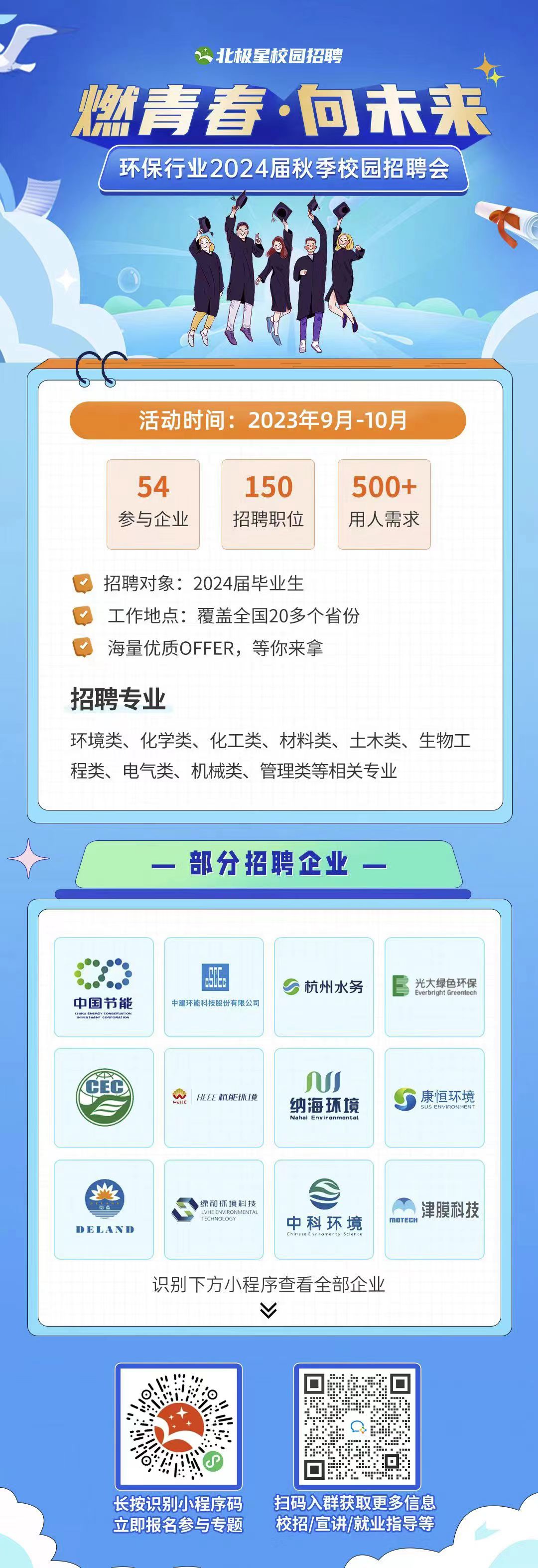 招聘专业:环境类、化学类、化工类、材料类、土木类、生物工程类、电气类、机械类、管理类等相关专业