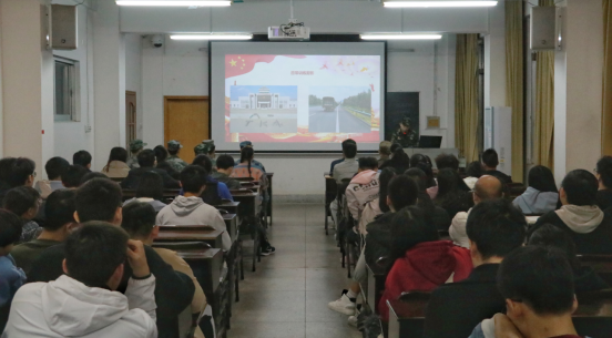 随后,武装部陈榕平老师作动员讲话,陈老师从当前国家安全形势讲起,告诉我们岁月静好的背后,需要祖国强大的国防力量,需要更多热血有志青年献身国防,希望同学们认真考虑,踊跃报名积极入伍在部队中锤炼成长成才,报效祖国。