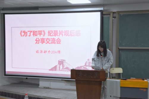 为深入贯彻落实习近平总书记在纪念中国人民志愿军抗美援朝出国作战70周年大会上的重要讲话精神,深入开展四史学习教育,大力弘扬伟大的抗美援朝精神,加强新时代爱国主义教育,教育引导广大师生厚植爱国主义情怀,1125日下午,能源动力204班组织全班同学观看了大型电视纪录片《为了和平》,借此缅怀先烈,牢记使命。