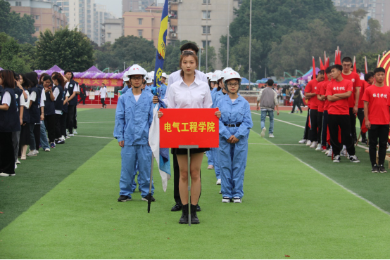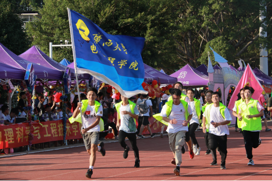 墨色淡云晕染天边,当轻柔晚风拂过西体育场,第五十届校运会慢慢落下帷幕。闭幕式上,电气学院的代表们身穿院服,踏着整齐激动的步伐,环绕着赛场,展示灵动的旗海与青春的自信。