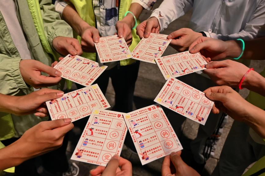 党员同志们在成功“打卡”全部站点后,在学习卡上集齐“我”“心”“向”“党”字样,完成集章任务。