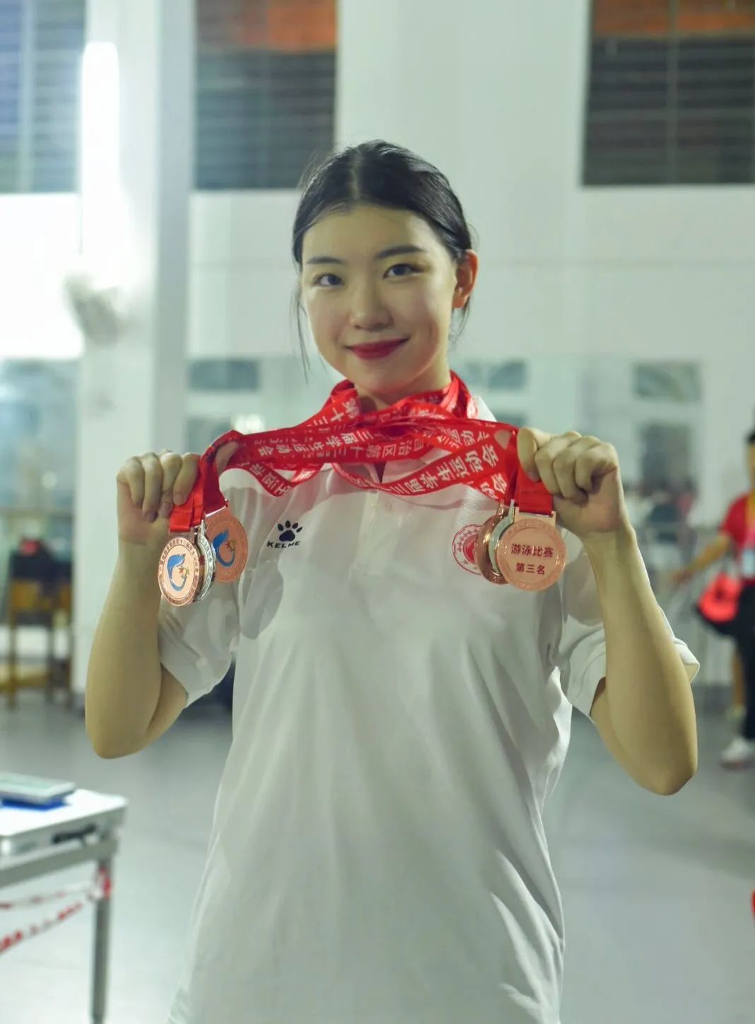 其中,我院电自196班李若婷,经过数月的刻苦备战,发扬奋勇争先的拼搏精神,在众多选手中一马当先,夺得400米自由泳项目银牌、200米个人混合泳项目银牌、200米自由泳项目铜牌、4*50米男女混合泳接力项目铜牌、女子4*50米混合泳接力项目铜牌以及女子4*50米自由泳泳接力项目铜牌,总计获得两银四铜的好成绩。