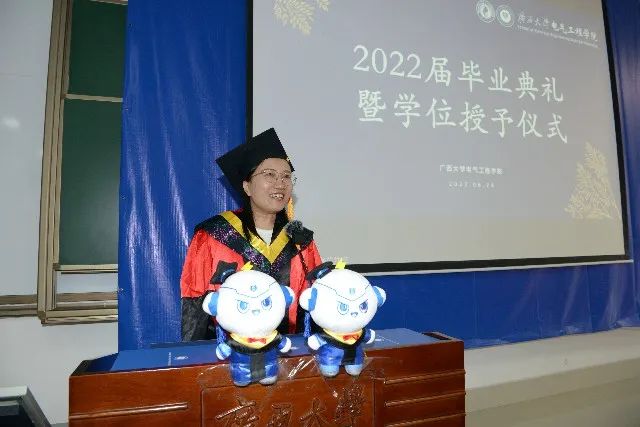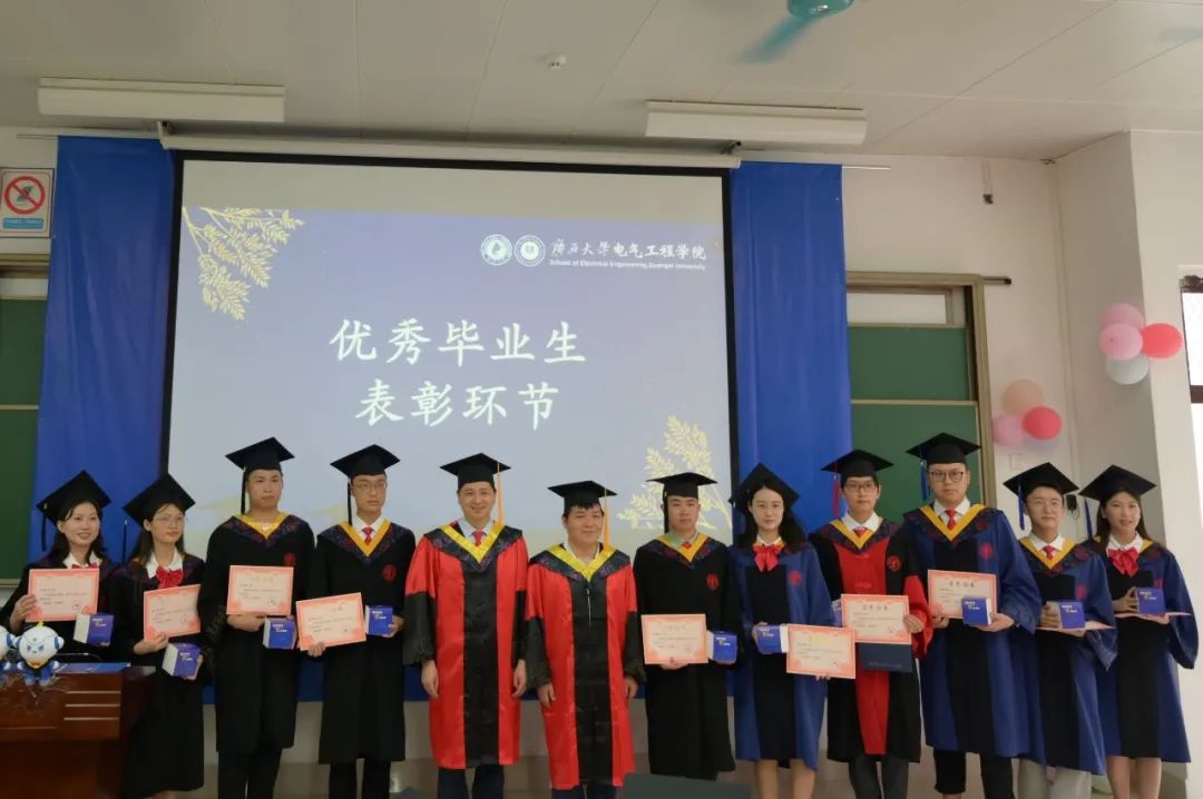 在学院分会场,学院对获得2022届“广西壮族自治区普通高等教育优秀大学毕业生”的10名学生进行表彰,由院党委书记梁志坚为获奖代表颁奖。