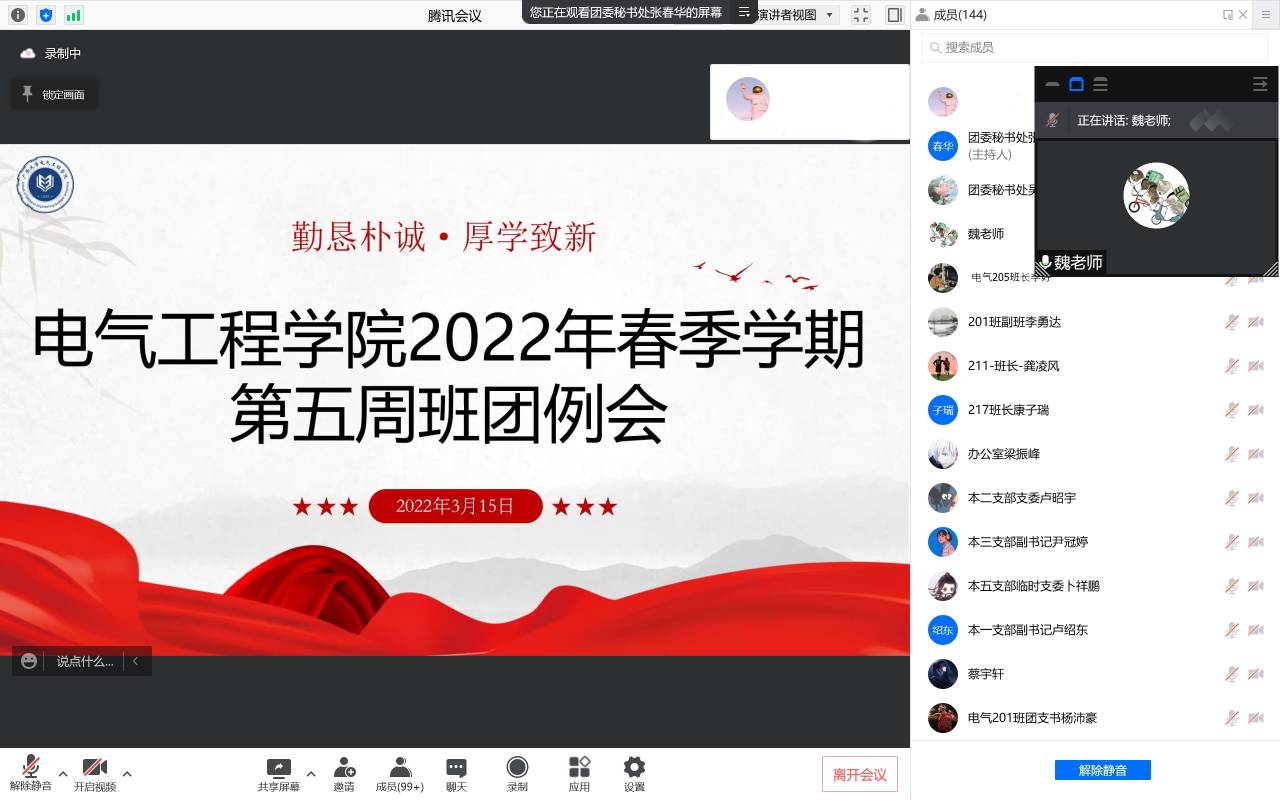 为提高学生的疫情防护意识,保障学生的自身健康安全,同时激励学生干部,为新学期做好全新的准备,ok138太阳集团古天乐于3月15日下午召开2021-2022学年春季学期全体学生干部大会。本次会议采用线上视频会议的形式开展,学院党委副书记雷圆媛、团委书记石建有、团委副书记蒋冬连、全体辅导员和全体学生干部参加会议。