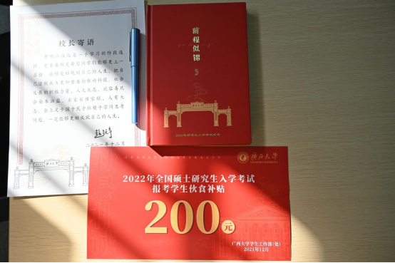 “对的老师,我是准备考咱们ok138cn太阳集团529,未来打算就留在广西发展啦”“老师们很有心,怕打扰我们复习,还专门在午饭时间来宿舍慰问大家”刚背完单词的王浩宇同学笑着说着,双手接过大礼包。