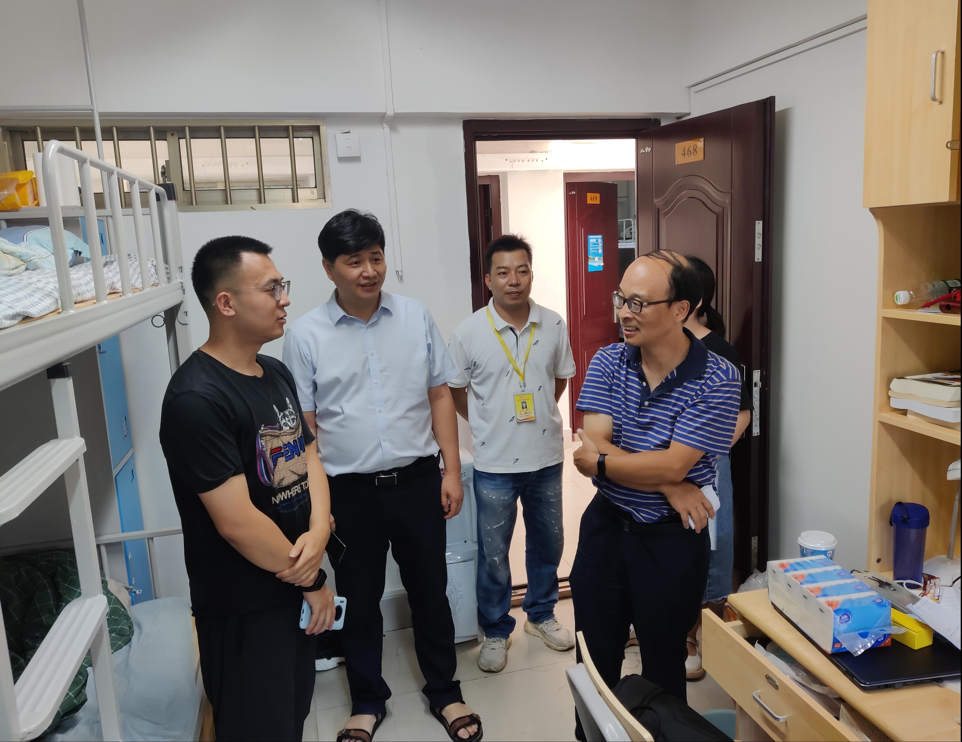 9月4日,ok138太阳集团古天乐迎来一批崭新的面孔,760余名新生将在这里开启一段全新的人生旅程。院长双丰,党委副书记梁志坚,副院长胡立坤、刘辉、黎静华、于婷等学院领导老师和部分学生干部走访新生宿舍,深入了解新生的住宿和适应情况并亲切问候2021级新同学。