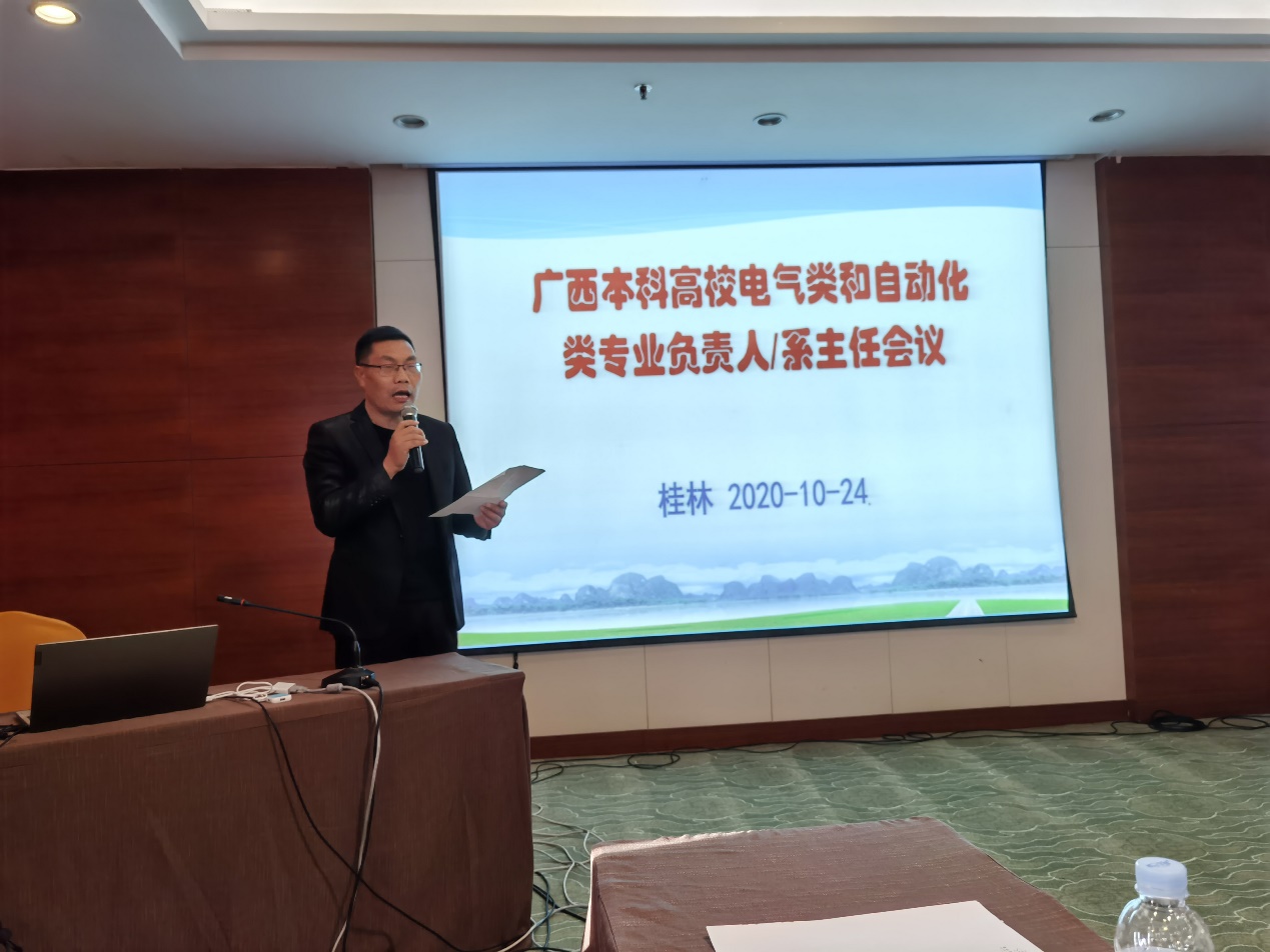 为加强我区各高校电气类和自动类专业的联系,2020年10月24日广西本科高校电气类和自动化类专业负责人/系主任会议在桂林召开,会议由广西本科高校电气工程及自动化类教学指导委员会主办,桂林理工大学机械与控制学院和ok138太阳集团古天乐承办。会议邀请桂林理工大学教务处副处长致欢迎辞,教指委委员伍锡如教授代表教指委致开幕辞。