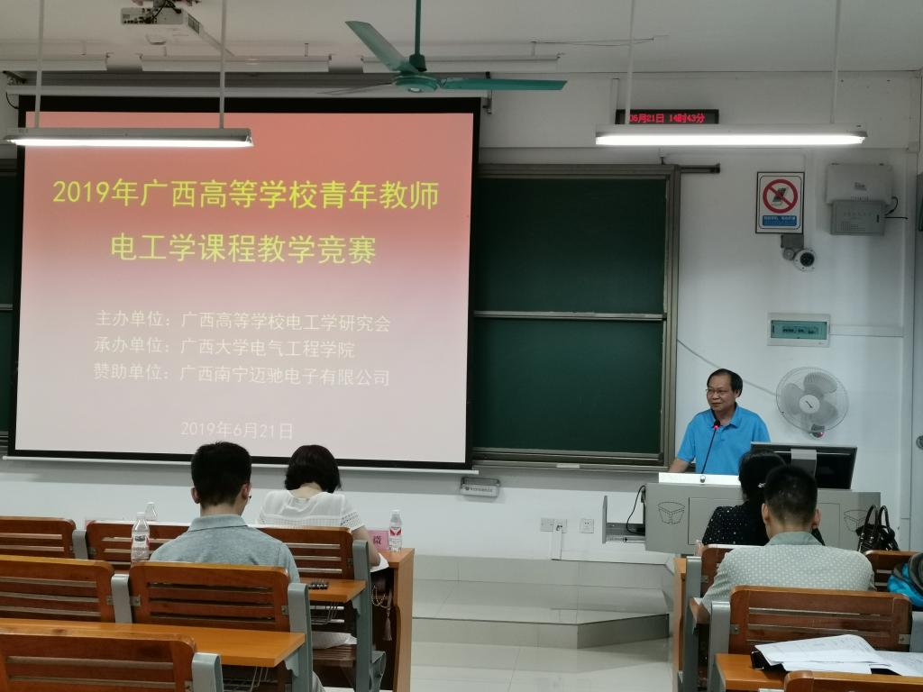 6月21日,“2019年广西高等学校青年教师电工学课程教学竞赛”在我校第六教学楼举行。竞赛由广西高等学校电工学研究会主办,ok138太阳集团古天乐承办,教务处副处长梁微、ok138太阳集团古天乐党委书记梁京章出席开幕式并致辞。