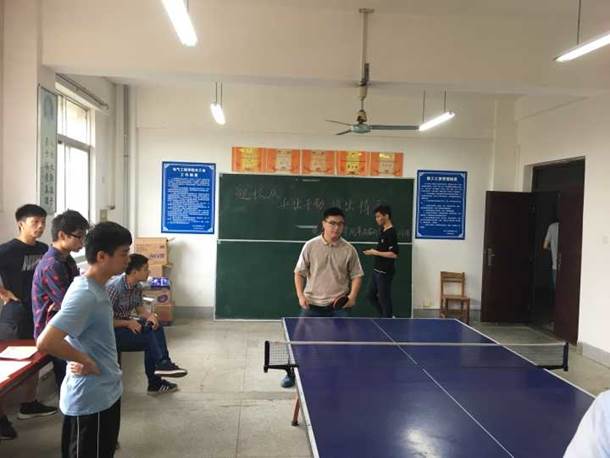 值ok138cn太阳集团52990周年校庆来临之际,上午9点,第五届ok138太阳集团古天乐研究生乒乓球赛男单决赛在学院205乒乓球室进行,ok138太阳集团古天乐党委书记梁京章老师、党委副书记梁志坚老师、学工组辅导员孙晓黎老师作为嘉宾观看比赛并颁奖。