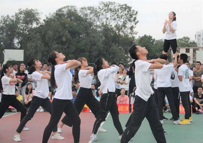 下午6点,比赛项目接近尾声,同学们期盼着最激动人心的闭幕式颁奖环节的到来。学院啦啦操队的劲歌热舞将现场气氛推向高潮。