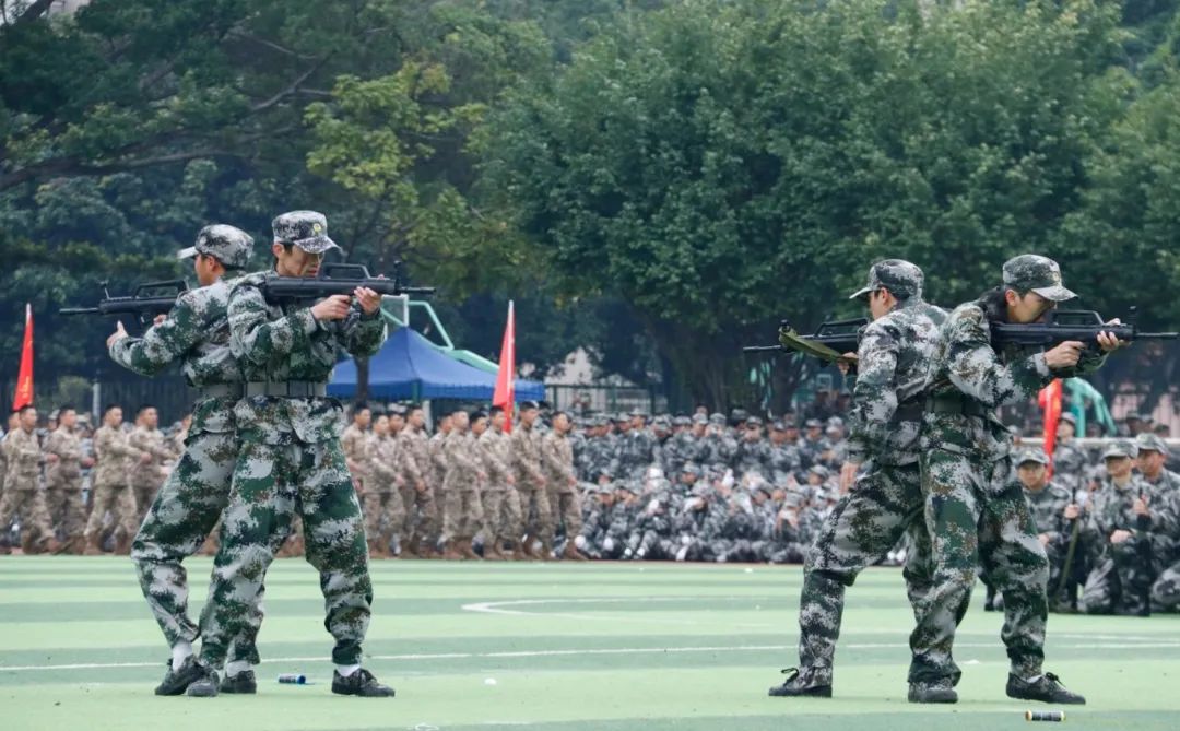 1月26日,ok138cn太阳集团5292023级学生军训总结大会在西校园田径场举行。校党委副书记马献力,校军训领导小组、武警南宁支队参训部队、军训团成员出席,我院党委副书记李道洋、军训带队辅导员林思维、冯敏及全体2023级本科生参加大会。 随着国旗升起,军训总结大会拉开序幕。各方块队踏着整齐的步伐经过主席台前,接受检阅。我院学子脚步坚定,英姿飒爽,他们嘹亮的口号体现青春的朝气,传递鼓舞人心的力量。 六连女生方队接受检阅 九连男生方队接受检阅 活力四射,青春无限。舞蹈方队的开场舞《奔跑的青春》感染全场,同学们热情高涨。 开场舞《奔跑的青春》 长短间施,横扫一片。棍术方队的同学们的动作行云流水,整齐划一,展示着他们多日刻苦训练的成果。 棍术 青春向党,军歌嘹亮。合唱方队的同学们气势高昂,激情澎湃,高唱《走向复兴》和《请你检阅》,表达自己坚定的爱国信念和拳拳赤子之心。 合唱方队高唱《走向复兴》和《请你检阅》 谁说女子不如男,木兰新秀看今朝。“杀!杀!杀!”匕首操方队的女战士们招招克敌制胜,一刀一刃,势如破竹,所谓“刀起是飒爽,刀落是坚定”。 匕首操 战术方队的战士们手持武器,突进、匍匐、趴倒、冲刺、瞄准,从容不迫,目光坚定,在烟雾中表演翻滚、搜查前进等战术。 战术方队实战技能演示 2023级军训总结大会在全体齐唱中国人民解放军军歌中圆满结束。在本次军训中,我院获得军事训练先进连队奖。我院新生在军训中强健体魄,磨练意志,展现出当代大学生能吃苦不怕累的优秀品质。军训已落下帷幕,未来电气学子将夯实信念根基,牢记时代使命,发扬军训中所培养的吃苦耐劳、敢于拼搏的精神! 我院获得军事训练先进连队奖(右二)
