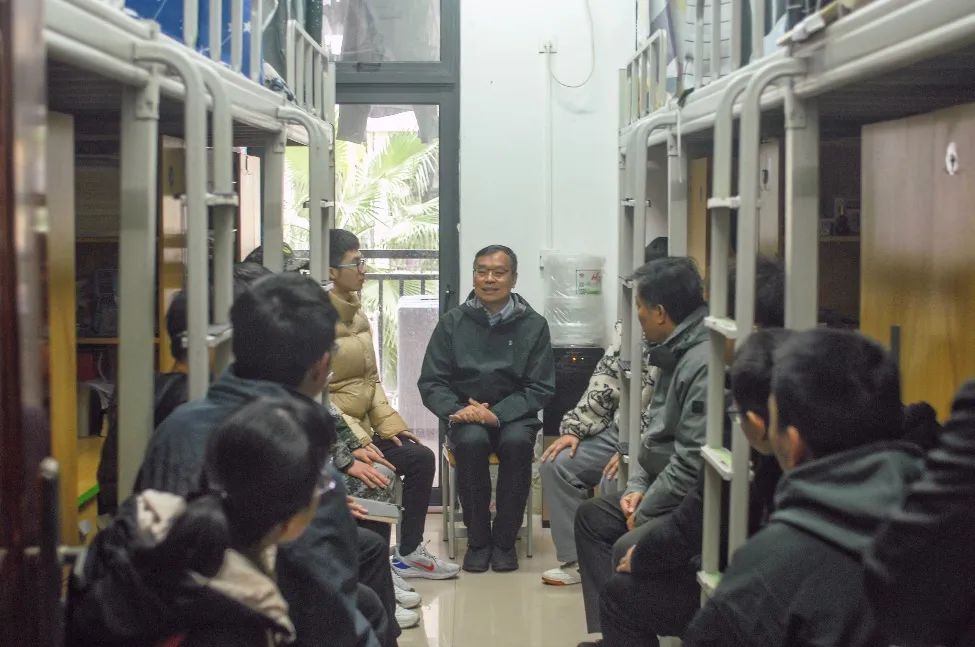 在寒假来临之际,为了解留宿学生学习、生活情况,1月26日下午,我校党委副书记、校长韩林海到东校园27栋学生宿舍楼走访慰问我院寒假留宿学生。我校党办校办、校务督查办,太阳集团部(处),科研院,国有资产与实验室管理处,后勤基建处相关负责人及我院党委书记梁志坚、院长武新章、党委副书记李道洋、团委副书记蒋冬连及学生辅导员们参加活动。 韩林海校长向留宿同学致以亲切的慰问,并详细询问和了解同学们对于校园食堂、学生宿舍管理等方面的意见和建议。他表示,学校一直关心同学们的生活质量问题,并将根据同学们的意见和建议,进一步加强和改进相关管理工作,为同学们提供更好的学习和生活环境。 韩林海校长(正中)与师生亲切座谈 韩林海校长了解到大部分同学是为了完成学业、科研、竞赛等任务而留校时,他叮嘱同学们要做好时间规划,确保各项任务有条不紊的进行,并与他们分享自己大学时期的奋斗经历,鼓励同学们坚定信心,勇于尝试、敢于拼搏、超越自我,努力做德智体美劳全面发展的社会主义建设者和接班人。 此次慰问活动,让我院寒假留宿学子受到极大鼓舞。他们对学校和学院的关心关爱表示感谢,并表示此次活动激发了他们的学习热情和进取心,促使他们更加努力学习,练就过硬本领,未来成长为可堪大任的时代新人。