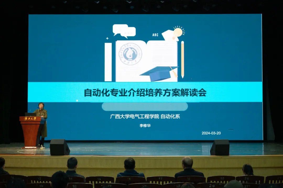 自动化系主任李修华老师从专业概况、培养方案、课程体系和就业方向四个方面进行对自动化专业的介绍。她指出,自动化专业历史悠久,是国家级特色专业,本科生的培养方案也在学校的引导下不断地修订,以便于更好响应国家政策、顺应时代需求。同时,自动化专业作为一个交叉性极强的学科,其毕业生就业方向很广。她鼓励大家选择自动化专业,以便进一步思考自己今后长远的发展方向。