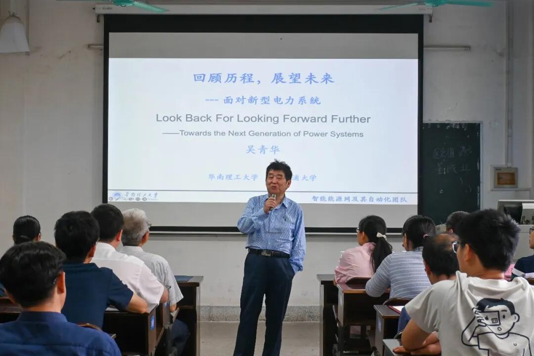 6月7日下午,华南理工大学能源研究院院长、利物浦大学终身讲座教授吴青华莅临我院,在学院304教室作题为“回顾历程,展望未来——面对新型电力系统”的学术报告。我院韦化教授主持会议,百余名师生旁听了本次报告会。 报告中,吴青华教授首先从科研问题的本质出发,着重强调了科学研究有效性的问题。接着吴教授向大家介绍系统设计中最重要的原则——“最小实现”,即满足同等效果的条件下,电子元件和运营管理人员的个数应该最小。随后吴教授详细介绍了他在系统建模、优化、决策支持、人工智能、互联网平台、信息处理、片上系统、协调控制、系统稳定域等方面开展的研究,给出了自己在应对未来复杂电力系统研究中应采用的方法和技术路线。此外,关于科学研究,吴教授认为比起盲目的追求发展和创新,将历史遗留的老问题解决掉也许更重要。 报告会的最后,师生们纷纷向吴教授提问各种科研问题,吴教授以自己的研究经验为大家提出了见解,现场学术氛围浓烈。