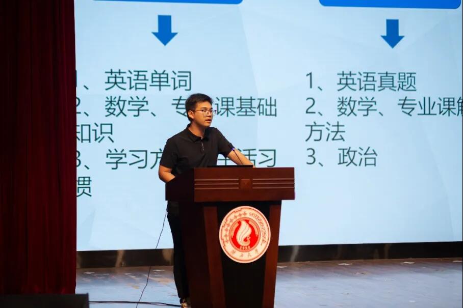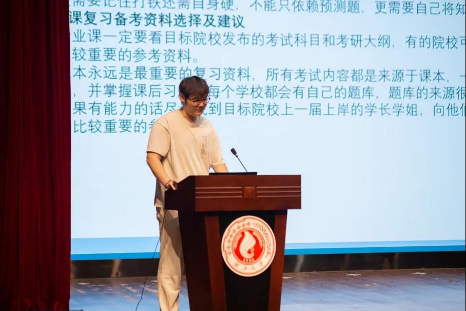 活动最后,我院党委副书记李道洋老师作总结讲话,李道洋副书记为同学们讲解了研究生和本科生的就业情况,强调读研的重要性,并鼓励我院青年学子们通过深造来提高自身竞争优势,争取更高的平台来获得更好的发展机会,不断挑战自我、超越自我。