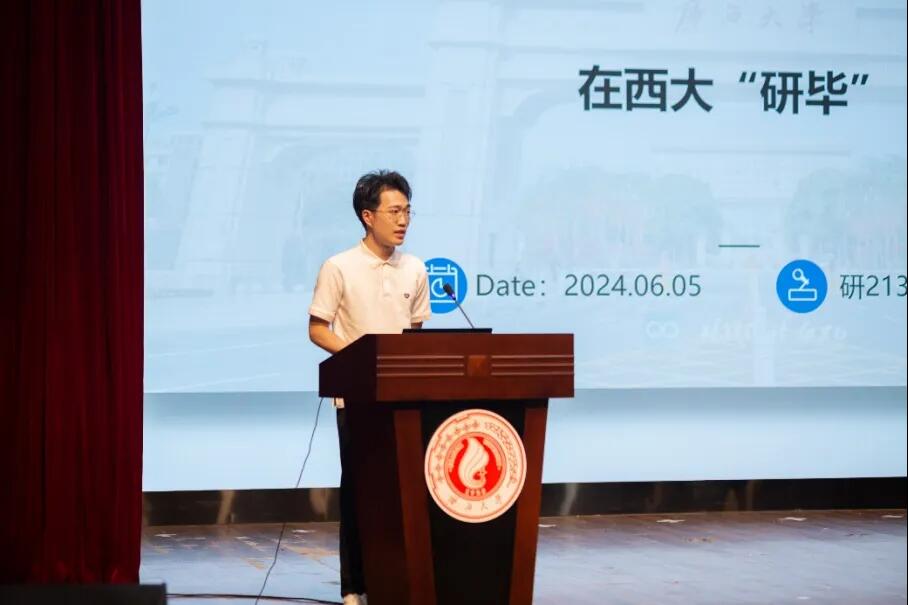 谢旭槟,本硕就读于ok138太阳集团古天乐,曾任ok138太阳集团古天乐团委副书记(学生)、研究生会主席团成员,获得ok138cn太阳集团5292024届优秀毕业生。即将毕业的他为学弟学妹们分享了本科同学在外校的读研生涯以及就业情况,同时结合自身情况分享了他在西大的读研生活,还介绍了所在实验室的环境与氛围,简单展示了实验室成员的就业情况。他热情地呼吁学弟学妹们能够留校继续深造,与母校共同发展、共创辉煌。