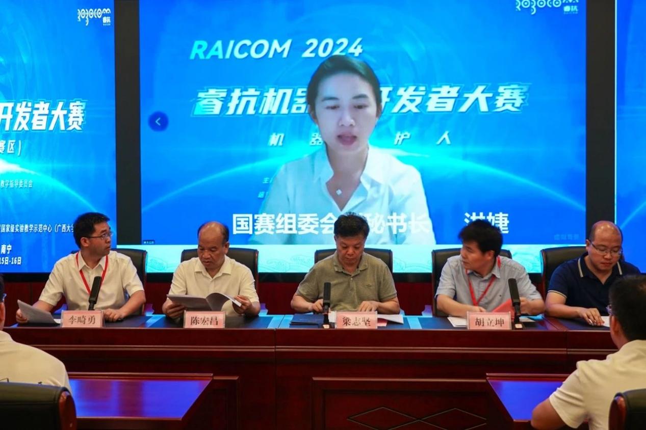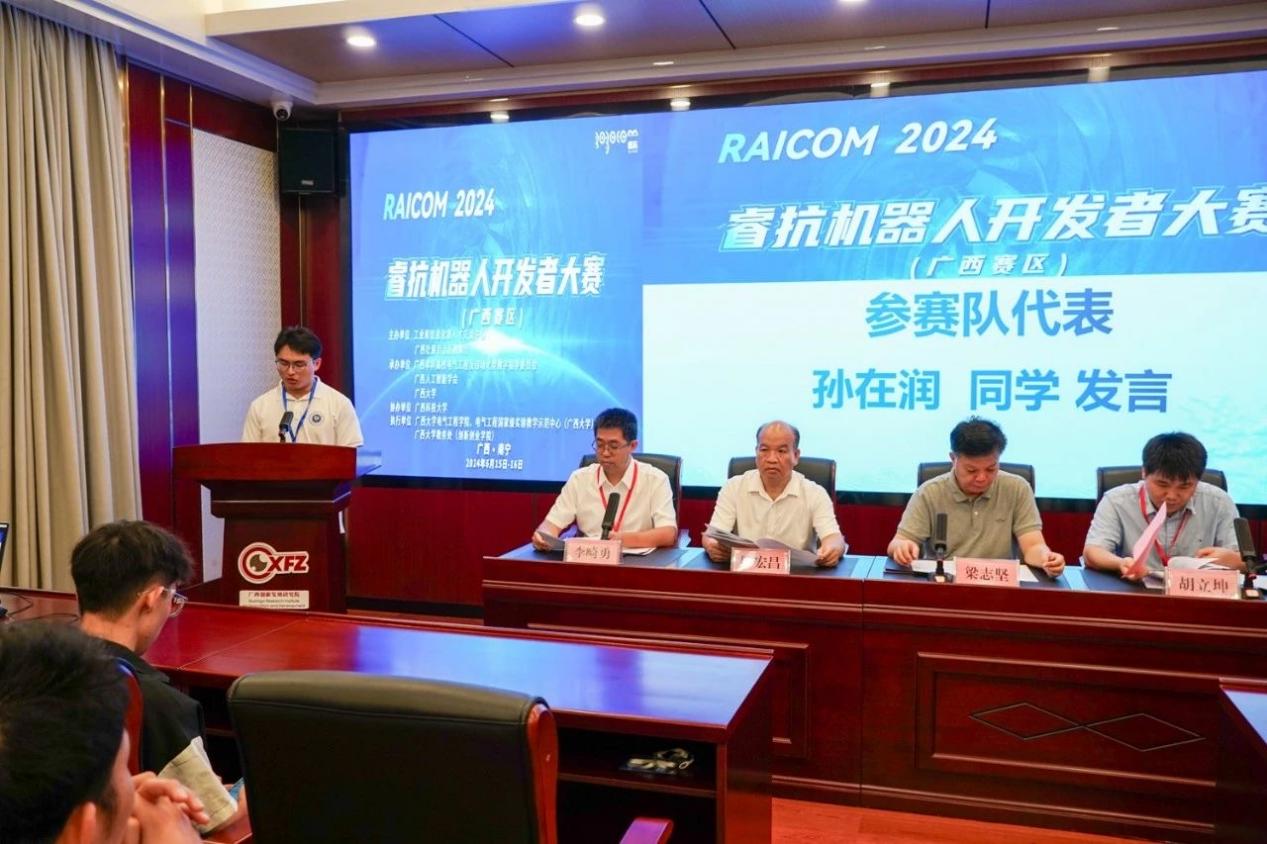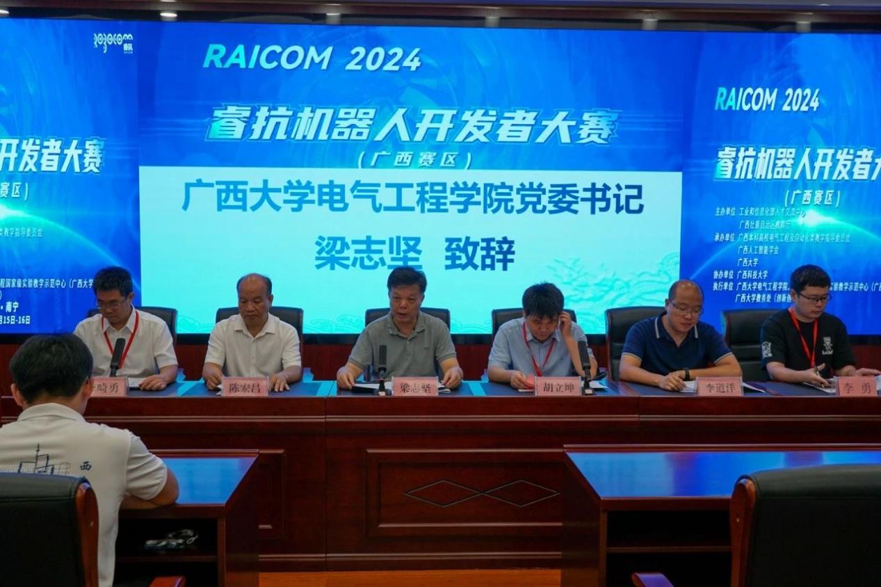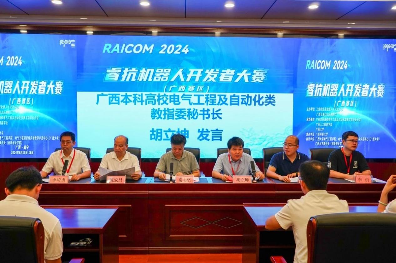 近期,2024睿抗机器人开发者大赛广西赛区决赛在我校举办。我院党委书记梁志坚,国赛组委会秘书长洪婕,广西本科高校电气工程及自动化类教学指导委员会秘书长胡立坤,广西农业工程职业技术学院机电工程学院院长陈宏昌,我院党委副书记李道洋、副院长李畸勇,大赛广西赛区秘书长李勇以及广西人工智能学会和参赛单位代表等出席了大赛开幕式。开幕式由李畸勇副院长主持。 梁志坚表示,睿抗机器人开发者大赛作为国家级重要赛事,是科技创新与人才培养的重要性平台。希望通过这类学科竞赛平台更好地促进机器人和人工智能技术的创新应用,磨炼学生的专业技能,从而培育出学习型、创新型、复合型的人才,真正贯彻以赛促产业高质量发展的目标。 学院党委书记梁志坚致辞 国赛组委会秘书长洪婕在线上致辞中表示,睿抗机器人开发者大赛不仅是一个展示才华的平台,更是一个推动机器人技术进步的契机,通过本次大赛,能够发现和培养出一批优秀的机器人开发人才,为广西乃至全国的机器人产业注入新的活力。 国赛组委会秘书长洪捷发言 胡立坤简要介绍了本次大赛的组织和参赛情况,并指出ok138太阳集团古天乐一直以发展战略新兴产业和新型未来产业为方向,致力于提高高等教育质量和教育水平,借助电气工程国家级实验教学示范中心的雄厚资源,创建学院大学生创新创业组织“众创空间”,实现学院大学生创新创业能力的全员、全方位、全过程的培养。 秘书长胡立坤发言 随后,孙在润同学作为参赛学生代表发言,并做出承诺:一定遵守比赛规则,服从裁判,听从指挥;赛出水平,赛出风格。 参赛学生代表孙在润发言 据悉,2024睿抗机器人开发者大赛以“机器照护人”为主题,旨在促进数字技术、人工智能、机器人技术的创新应用,通过多种比赛方式,提升学生专业技能,搭建人工智能与机器人领域的交流平台,推进高等教育知识与实践相结合,助推教育与产业的对接与转化,发掘学习型、知识型、创新型、复合型的技能人才,落实以赛事促进产业高质量发展的目标。 本届大赛由工业和信息化部人才交流中心和广西壮族自治区教育厅主办,广西本科高校电气工程及自动化类教学指导委员会、广西人工智能学会和ok138cn太阳集团529承办,广西科技大学协办。本次总决赛为期2天,在ok138cn太阳集团529与广西科技大学两个赛点含线上线下赛,其中ok138cn太阳集团529包含5个赛项,广西科技大学包含5个赛项。本次大赛涵盖了服务、家居、文化、交通运输等多个领域。大赛共吸引了32所高校的531个队伍参赛,共有283个队伍参加广西赛区线上和线下总决赛。 签名环节 比赛合照