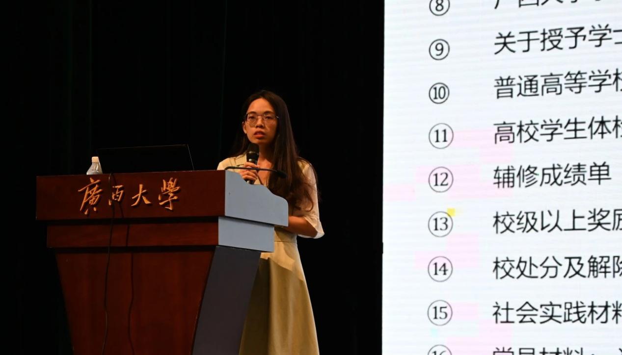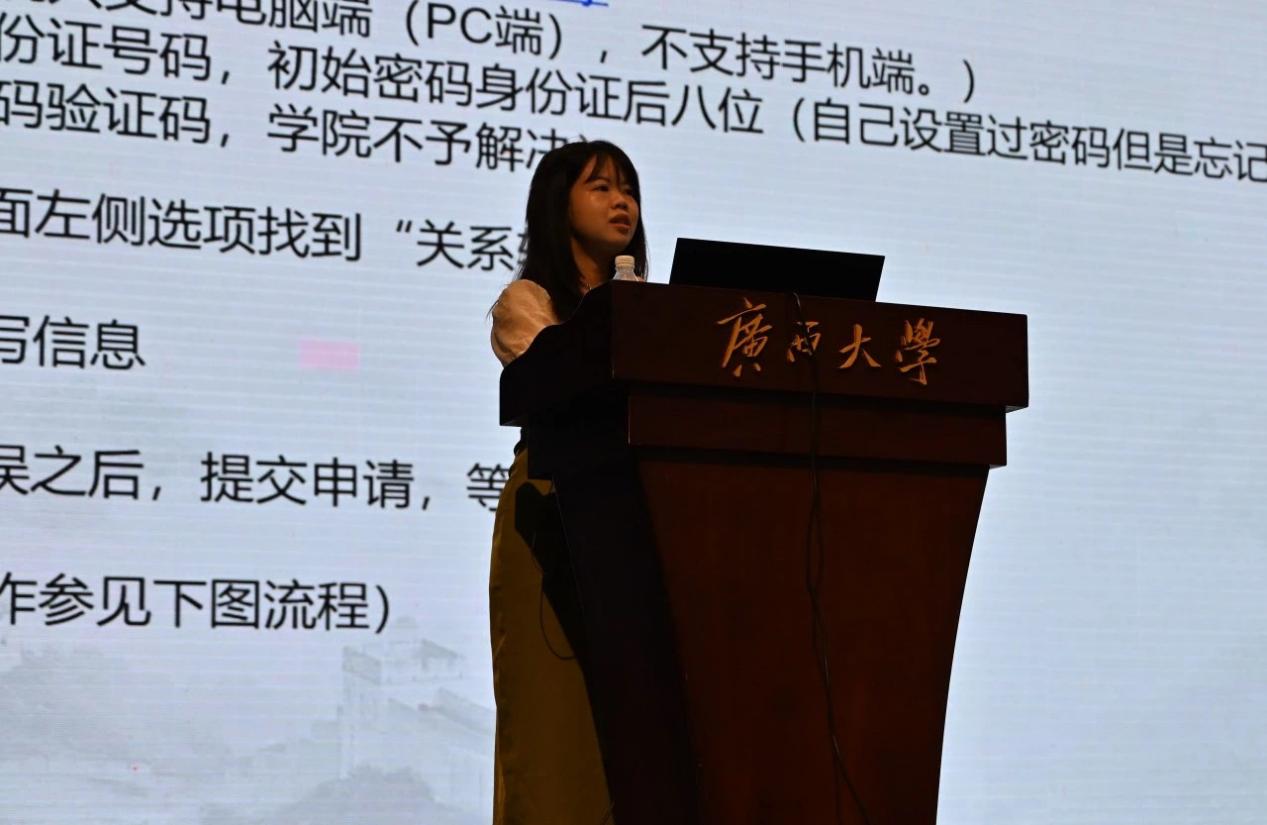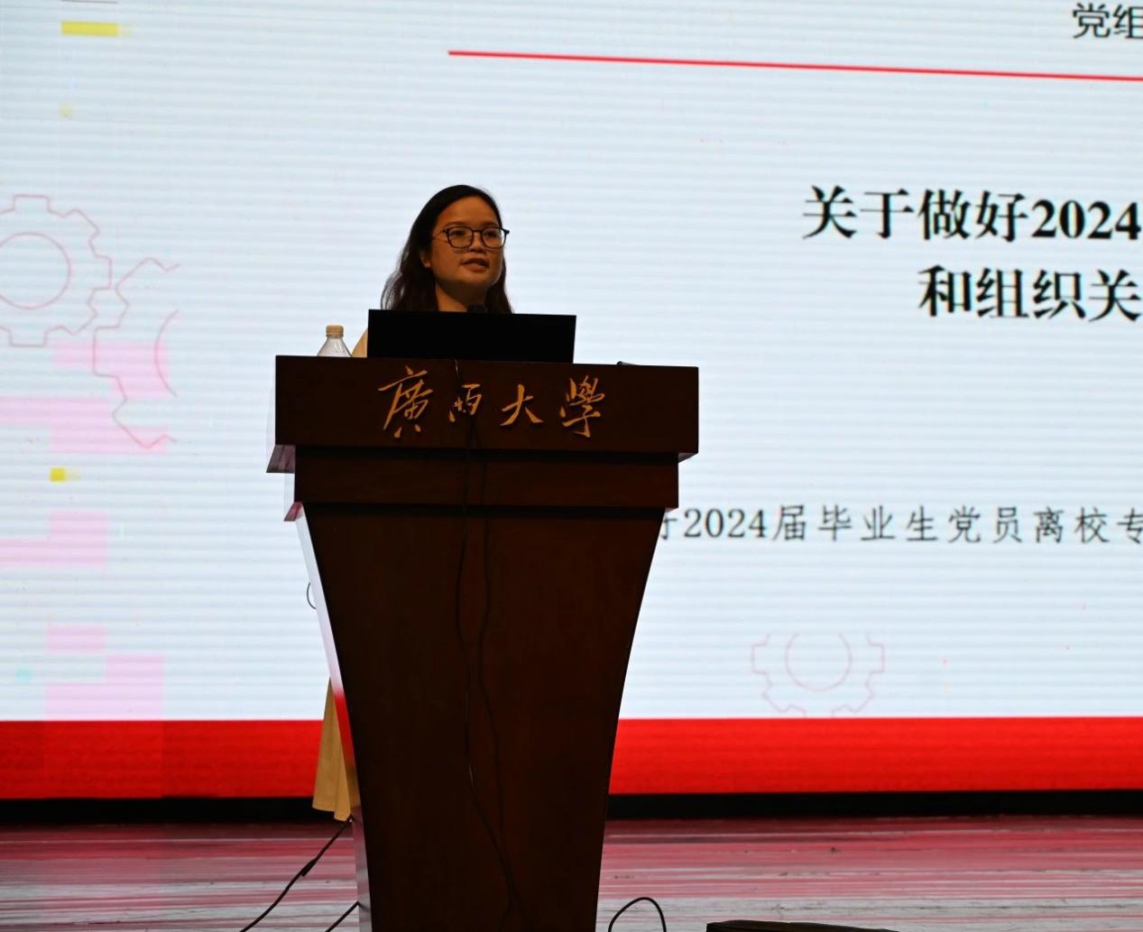 为做好学院2024届毕业生毕业教育与离校相关工作,增进毕业生爱校荣校、诚信感恩、安全保密、廉政廉洁意识,6月20日上午,ok138太阳集团古天乐在学校大礼堂举行2024届毕业生毕业教育大会,我院党委副书记、纪委书记李道洋,校武装部国防教育岗磨奕君,学院专职组织员黄丽梅,辅导员李楠、李浩铭、何惠榕出席会议,ok138太阳集团古天乐2024届全体毕业生参会,会议由辅导员李浩铭主持。 磨奕君老师进行征兵宣讲 会议伊始,磨奕君老师对全体电气学院应届毕业生进行征兵宣讲。磨老师鼓舞我院应届毕业生响应祖国号召,踊跃报名参军。欢迎有志青年到军队这个大舞台施展才华,在军营这个大熔炉里淬炼成钢,书写绚烂、无悔的青春篇章,为实现中国梦、强军梦贡献自己的力量。 李道洋副书记为毕业生党员和团员上党课 接着,李道洋副书记对与会毕业生圆满完成学业、踏上新征途表示祝贺,并就遵纪守法、廉洁从业、安全保密、安全稳定等方面内容进行了教育。李副书记首先告诫所有毕业生党员在今后要抵制社会的各种诱惑,对党忠诚,永不叛党。紧接着,李书记以“守底线,知敬畏”为主题对毕业生进行廉洁从业教育。大家要时刻怀有敬畏廉洁教育制度、敬畏党纪国法之心,敬畏是一种责任,是一种发自内心的真感情。他告诫全体毕业生要时刻警示自己有所为有所不为,坚守道德与理性底线,牢记廉洁从业,经得起诱惑,守得住防线。 李楠老师讲解智慧团建团组织关系转出 随后,李楠老师就“智慧团建”毕业生团组织关系转接的操作流程、时间安排等事项进行了演示及说明。 黄丽梅老师讲解党组织关系转移 黄丽梅老师对2024届毕业生党员的党组织关系转移相关事宜进行了解读,就毕业生党员档案材料整改及移交、毕业生党员组织关系转移两大重点事项进行了清晰的说明。 何惠榕老师讲解毕业生档案归档及迁移 何惠榕老师对毕业生个人人事档案归档及迁移的注意事项进行了讲解,就本科生、研究生的材料归档范围、去向登记、档案邮寄等常见问题逐一进行了解答。 李浩铭老师讲解离校手续及助学贷款偿还 最后,李浩铭老师向毕业生说明了毕业离校手续等相关事项的办理流程以及偿还助学贷款的相关注意事项,希望毕业生做到“文明离校,快乐启程”。毕业是新的开始,是开启人生的下一站新征程,他寄语毕业生们要怀揣梦想,脚踏实地,踏实工作,为社会做贡献。