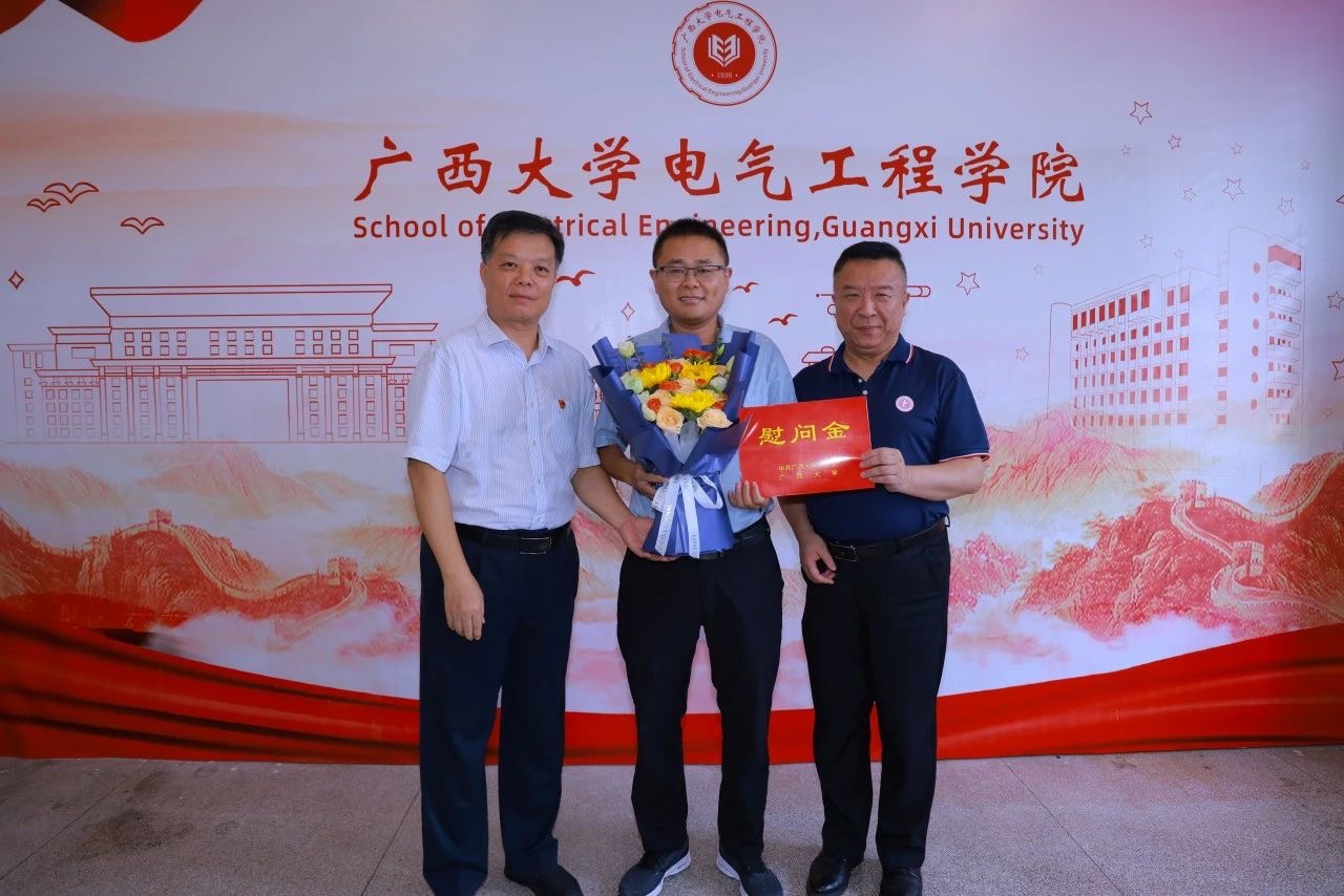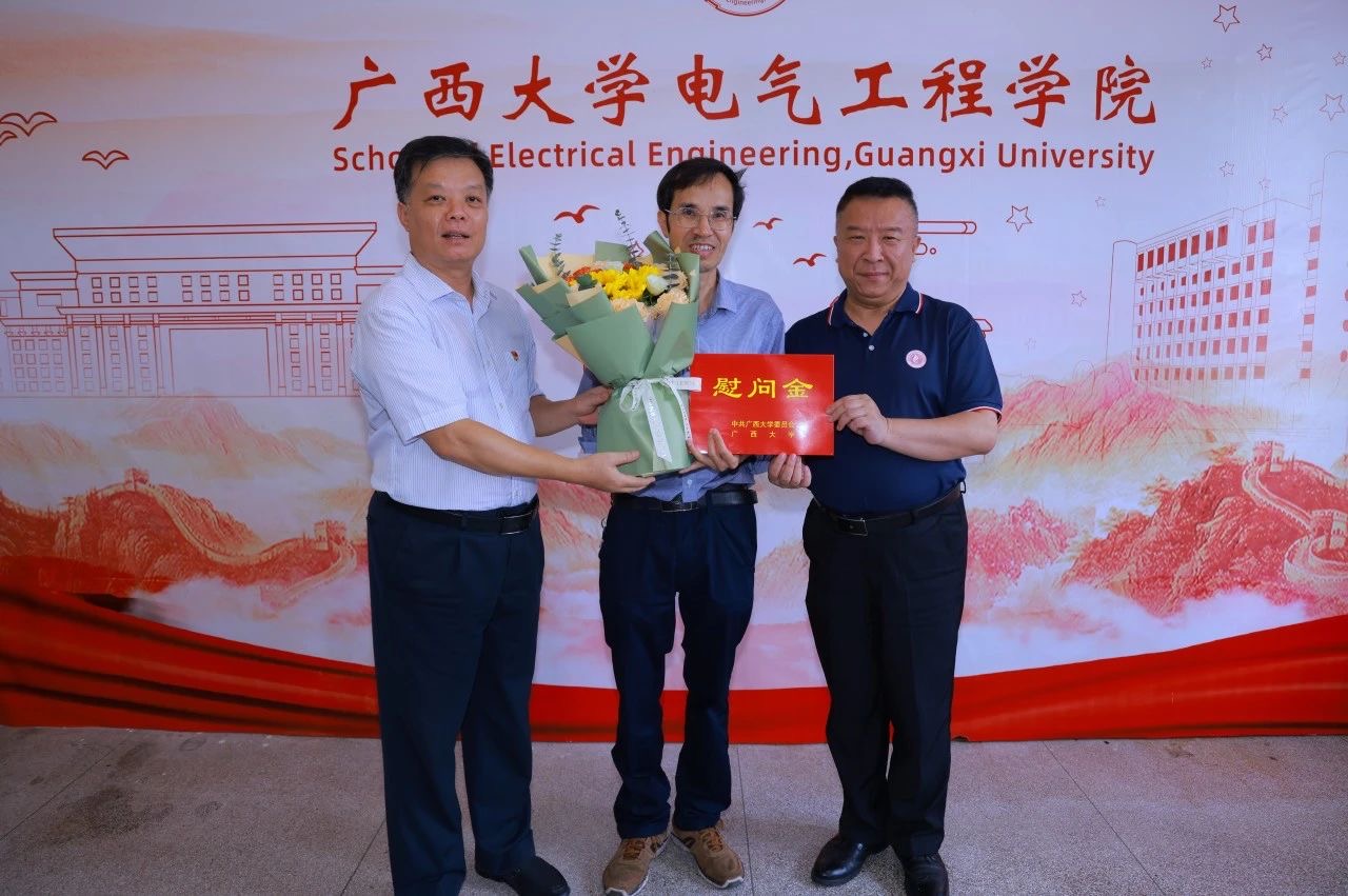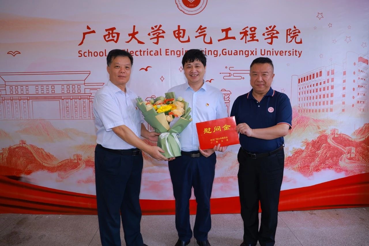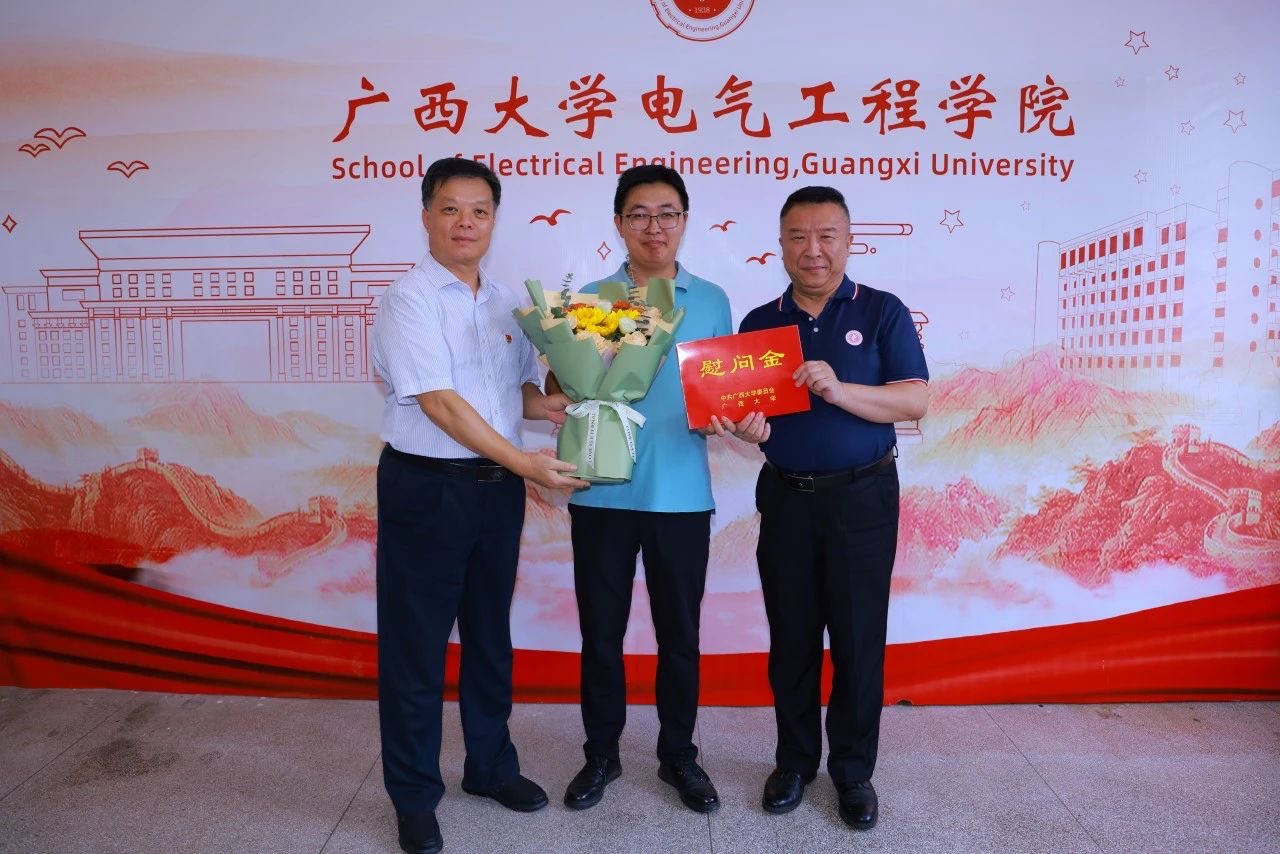 9月9日下午,在我国第40个教师节来临之际,为关心教师工作生活和身心健康,传达学校的关怀温暖,营造尊师重教良好氛围,按学校统一安排,学院党委和行政代表学校开展2024年教师节慰问活动。学院党委书记梁志坚,院长武新章,党委副书记李道洋,副院长李畸勇、郑天和,向我院深耕教育一线的四位学院教师代表刘辉教授、陈延明教授、刘捷丰副教授和贾鹏飞副教授致以崇高的敬意和节日的问候。 在慰问座谈会上,学院领导与教师们亲切交谈,了解他们的工作、生活、科研等情况。梁志坚书记勉励各位老师强化使命担当,大力弘扬教育家精神,继续把立德树人作为教育教学工作的出发点和落脚点,牢记为党育人、为国育才的使命,为学院人才培养工作和事业发展再建新功。 随后,梁志坚书记和武新章院长为教师代表分别送上鲜花和慰问金。 受到慰问的教师代表简介 教师代表 刘辉老师,在2024年入选教育部国家重大人才工程,是我院自主培养的首位国家级高层次人才。 刘辉老师 陈延明老师,几十年如一日深耕电力电子技术领域,取得优异的科研业绩。 陈延明老师 刘捷丰老师,入选广西重大人才工程,在科研领域连续取得优异成果。 刘捷丰老师 贾鹏飞老师,在电气工程与生物医学交叉领域取得良好业绩,入选2024年ok138cn太阳集团529“我心目中的好老师”。 贾鹏飞老师 受到慰问的教师代表表示,衷心感谢学院领导的关心关怀,今后将继续以饱满的热情投入到教育事业,立德树人、教书育人,为学院发展贡献自己的力量。