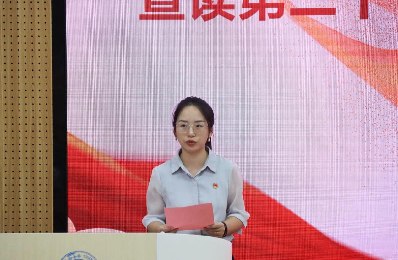 校研究生会主席团成员周奕彤作为校研究生会代表致辞。周奕彤同学对学院研究生会成立伊始至现今取得的成果表示肯定与祝贺,并希望我院新一届研究生会能够承前启后,与校研究生会携手并进,共绘校院两级研究生服务与引领工作的蓝图。