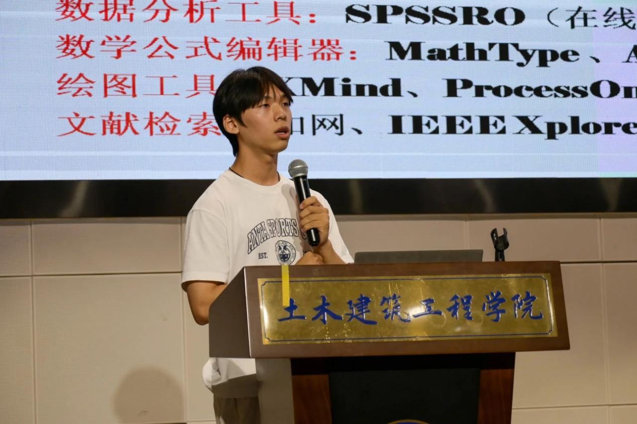 竞赛经验丰富的熊轶同学在此次活动中,主要为同学们分享了互联网+、挑战杯、数学建模等各类学术竞赛的参赛经验,介绍了各类学科竞赛的分级、内容、技巧以及优势。同时,他对各项赛事的参赛周期,所需材料,赛事要求和比赛方式等都做出详细讲解,为将要参加竞赛的同学指点迷津。