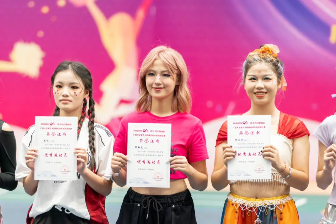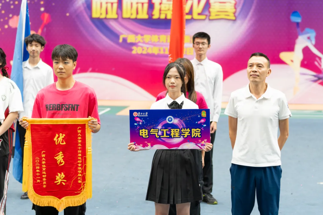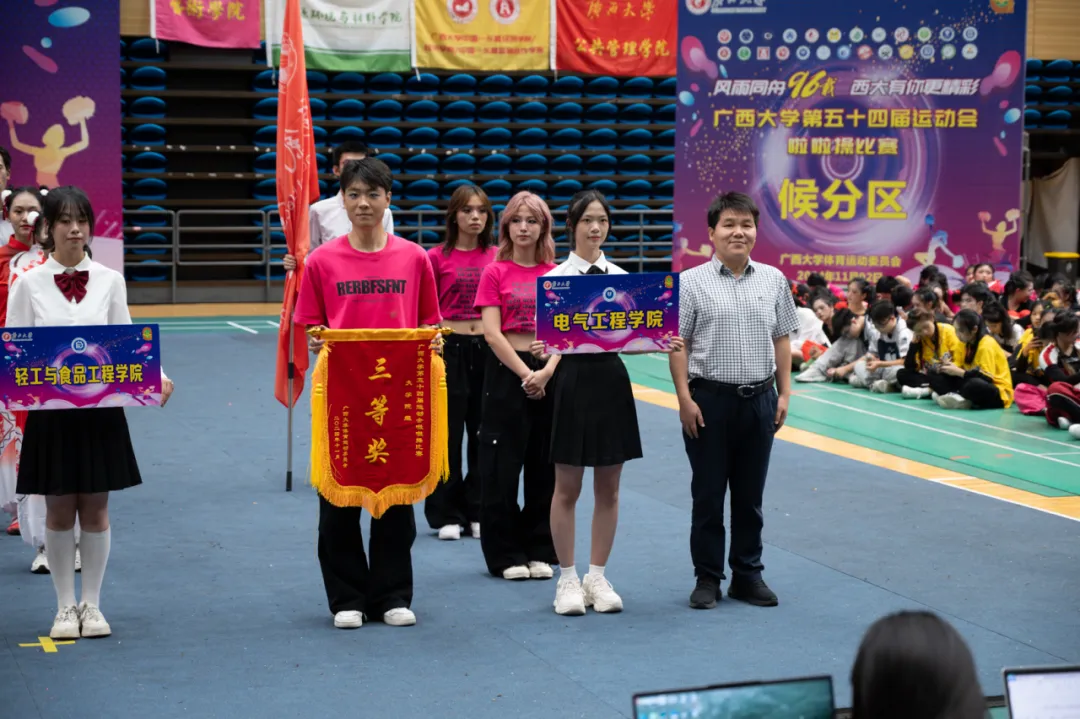 01 开幕式及颁奖 风雨同舟96载,西大有你更精彩。11月2日下午,ok138cn太阳集团529第五十四届运动会啦啦操比赛在西校园综合体育馆如期开幕。经过一番“舞动乾坤”的较量,我院参赛队伍荣获大学院组三等奖、体育道德风尚奖及优秀奖。 开幕式我院队伍入场 我院荣获三等奖 我院获得奖励 02 啦啦队风采 ok138太阳集团古天乐啦啦操运动员们身着绚丽夺目的火龙果色队服,如花的笑脸绽放着青春的活力。他们如盛放的花朵,更如点燃夜空的烟花,尽显生命力量! 啦啦队员在表演 啦啦队员在表演 英姿飒爽,自信张扬,像划破黑暗的电光,他们的每次旋转跳跃都能让人眼前一亮! 啦啦队员在表演 啦啦队员在表演 他们用激情和汗水,在赛场上书写着青春华章,尽显青春活力之美,让满场观众无不沉醉在这热血沸腾的活力盛宴中,为他们献上热烈的掌声!继续带着刻苦拼搏精神向前走吧,奋进的电气学子们!文明其精神,野蛮其体魄,为建设更积极向上的校园文化贡献青春力量! 我院仇翘楚同学(中)获得“优秀运动员”表彰 我院学子在加油助威 赛后合照