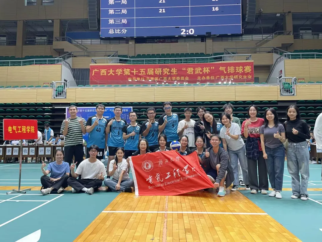 11月2日至11月3日,由共青团ok138cn太阳集团529委员会指导,ok138cn太阳集团529研究生会主办的ok138cn太阳集团529第十五届研究生“君武杯”气排球比赛在ok138cn太阳集团529西校园综合体育馆举行。我院代表队11名成员全力以赴,勇赴赛场。 11月2日晚上进行小组赛,我院分别对阵新闻与传播学院、工商管理学院、校级功能型党支部。在紧张刺激的攻防转换、拦网扣杀中,队员们配合默契,发挥了优秀的团队合作和竞技水平。最终以大比分2:0的成绩分别战胜新闻与传播学院、校级功能型党支部,以0:2的成绩惜败工商管理学院。最终,以小组第二名的成绩晋级淘汰赛。 比赛现场 11月3日上午,我院代表队与公共管理学院代表队进行1/8决赛对决。面对对手的猛烈攻势,我院健儿沉着应战,默契配合。在比分落后的情况下,我院气排球代表队坚持“球不落地,永不言弃”的信念,不放弃任何一个球,团结一心、奋勇拼搏到最后一刻。最终,随着裁判的一声哨响,比分定格在了0:2,我院代表队憾负公共管理学院。 双方握手 比赛现场 在研究生“君武杯”气排球比赛的赛场上,我院代表队以青春的名义,挥洒汗水,释放激情,生动演绎了青春的力量与拼搏的精神,止步1/8决赛不是终点,而是我院气排球队继续前进的起点。期待在未来的学习、生活中,电气学子能继续奋勇向前,突破自我,创造佳绩! 合照