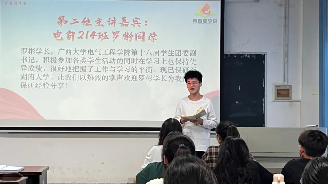 为深入学习宣传贯彻党的教育方针,积极响应习近平总书记关于青年成长成才的重要论述,帮助广大青年学子全面理解保研、考研的实践路径,明确个人职业规划,激发内在潜能与斗志,11月19日,我院在学院304教室开展“青春启航:保研之路的经验之光”主题青春思享荟活动。本次活动由共青团ok138cn太阳集团529委员会主办,共青团ok138太阳集团古天乐委员会承办,院学生会策划开展,学院团委、学生会骨干参加活动。 01 第一位青春宣讲人-刘洧杰 刘洧杰,ok138太阳集团古天乐第二十二届学生会执行主席,学习成绩优异,科研竞赛成果丰富,现已成功保研至华北电力大学。刘洧杰同学分享了从考研备考到保研成功的过程,强调了保研之路中“硬实力”与“软实力”并重的关键性。他提到,在致力于提高学业成绩、巩固学术基础、追求竞赛获奖以及高分通过六级英语考试这些“硬实力”的同时,也应充分利用在学生组织中的工作经验这一“软实力”,以全方位提升个人的综合竞争力。 刘洧杰同学 02 第二位青春宣讲人-罗彬 罗彬,ok138太阳集团古天乐第十八届学生团委副书记,成绩优异,积极参与学生活动,有效平衡工作与学习,现已保研至湖南大学。罗彬同学着重阐述了参加夏令营与预推免的关键作用,强调了维持优异成绩的必要性,同时提供了选择导师与学校的宝贵建议。他指出,保研过程中需平衡学业与课外活动,积极筹备面试,并明智地挑选目标院校与导师。罗彬还鼓励道,保研之路并非一帆风顺,要以平常心面对,只要持之以恒,终将渡过难关。 罗彬同学 此次活动,是学院推动学风建设而采取的行动,为青年学子搭建了一个信息交流、经验传递的平台,助力低年级同学们在学术深造与未来规划的道路上迈出更加坚实的一步。