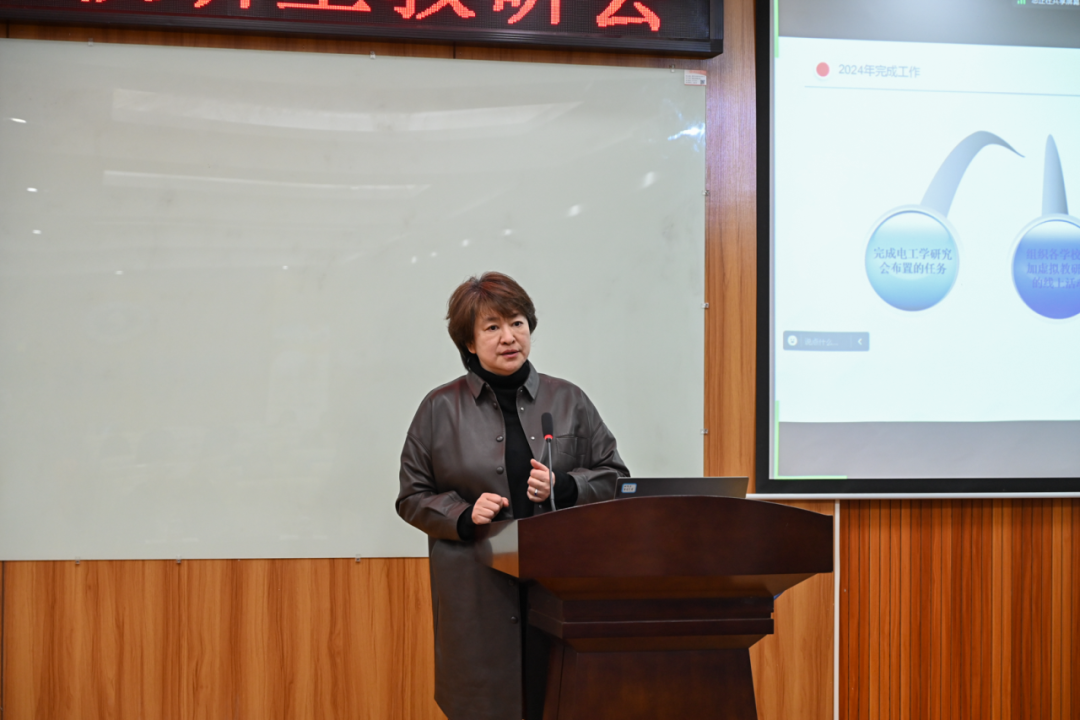 重庆市电工学研究会理事长周静介绍了重庆对研究会工作精神的传达和思考,以及在新版电工学教学要求下课程的改进与发展,并重点介绍了虚拟教研室的建设情况及教师能力的培养。