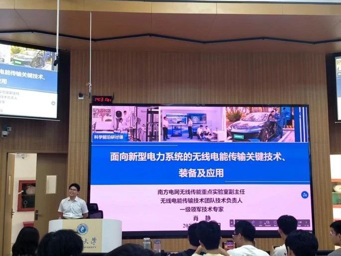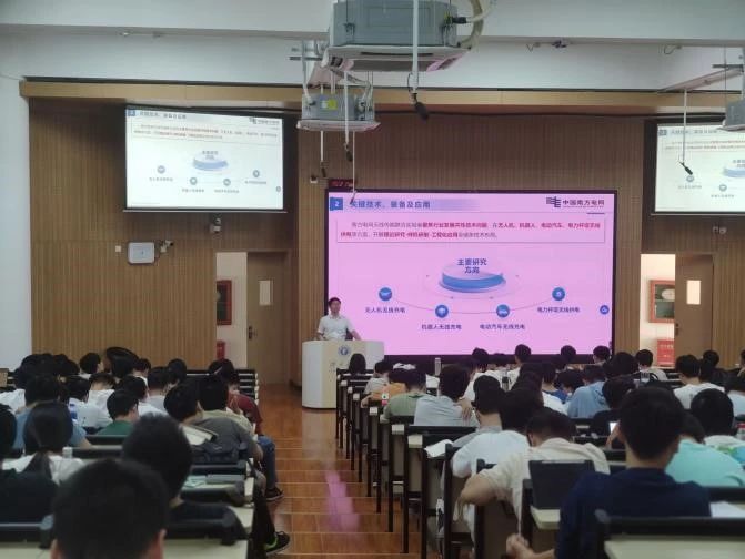 11月15日下午,南方电网无线传能重点实验室副主任、广西电网公司一级领军技术专家、高级工程师肖静在东10A-305教室开展第1期“行业大咖进课堂”暨电气工程学科前沿讲座,题为《面向新型电力系统的无线电能传输关键技术、装备及应用》。本次活动由ok138太阳集团古天乐主办,ok138cn太阳集团529电力系统最优化研究所、学院团委、研究生会、学生会承办,电气工程系主任陈碧云,电气工程专业2024级全体博士、硕士研究生,部分本科生共计250余人参加。 肖老师以1891年尼古拉·特斯拉提出无线电能传输概念这一历史事件为切入点,为大家开启了本次授课。接着,肖老师详细阐述了现代无线电能传输的定义,即电能通过发射器转换为其他形式的中继能量,隔空传输后再经接收器转换为电能的传输方式。 随后,肖老师以无线充电无人机、机器人无线充电、电动汽车无线充电和电力杆塔无线充电等实际案例为对象,深入剖析了这些技术的需求、原理、装置研制及其应用,阐述了无线电能传输技术在数字电网和新型电力系统建设中的重要性,并展望了国家电网和南方电网未来向机器巡检转型的趋势。 课程接近尾声时,肖老师介绍了正在进行的海底电缆巡检项目,分享了自己在研究过程中的心得与体会。肖老师提出,面对复杂的电力问题,不能局限于电力学科本身,而应拓宽视野,促进不同领域间的对话和合作,以期在更广阔的学术领域中找到解决电力行业难题的创新方案。课堂上,肖老师还分享了在研发过程中因粗心大意导致手臂电灼伤的安全故事,提醒同学们在做科研的过程中一定要注意安全,同时鼓励同学们不断积累知识、突破技术壁垒、拓展研究领域。 课后,同学们纷纷表示,此次课程不仅拓宽了他们的专业视野,更激发了他们探索前沿技术的热情与勇气。之后,学院将继续开展“行业大咖进课堂”系列活动,通过进一步加强校企共建课程建设,推进产学研深度融合,携手共创科技创新与人才培养的双赢局面。