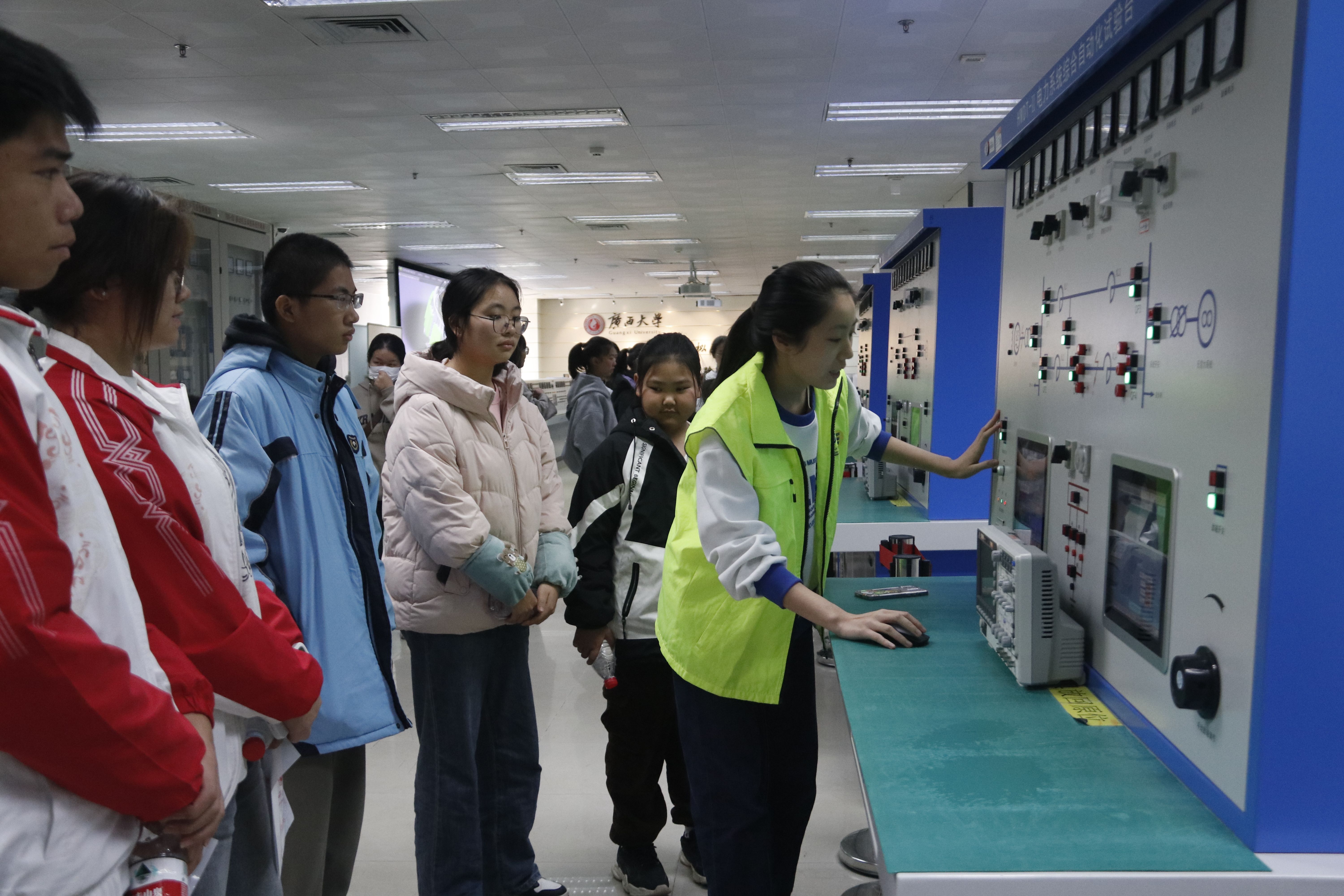 志愿者带领青少年进行电力系统调度实操
