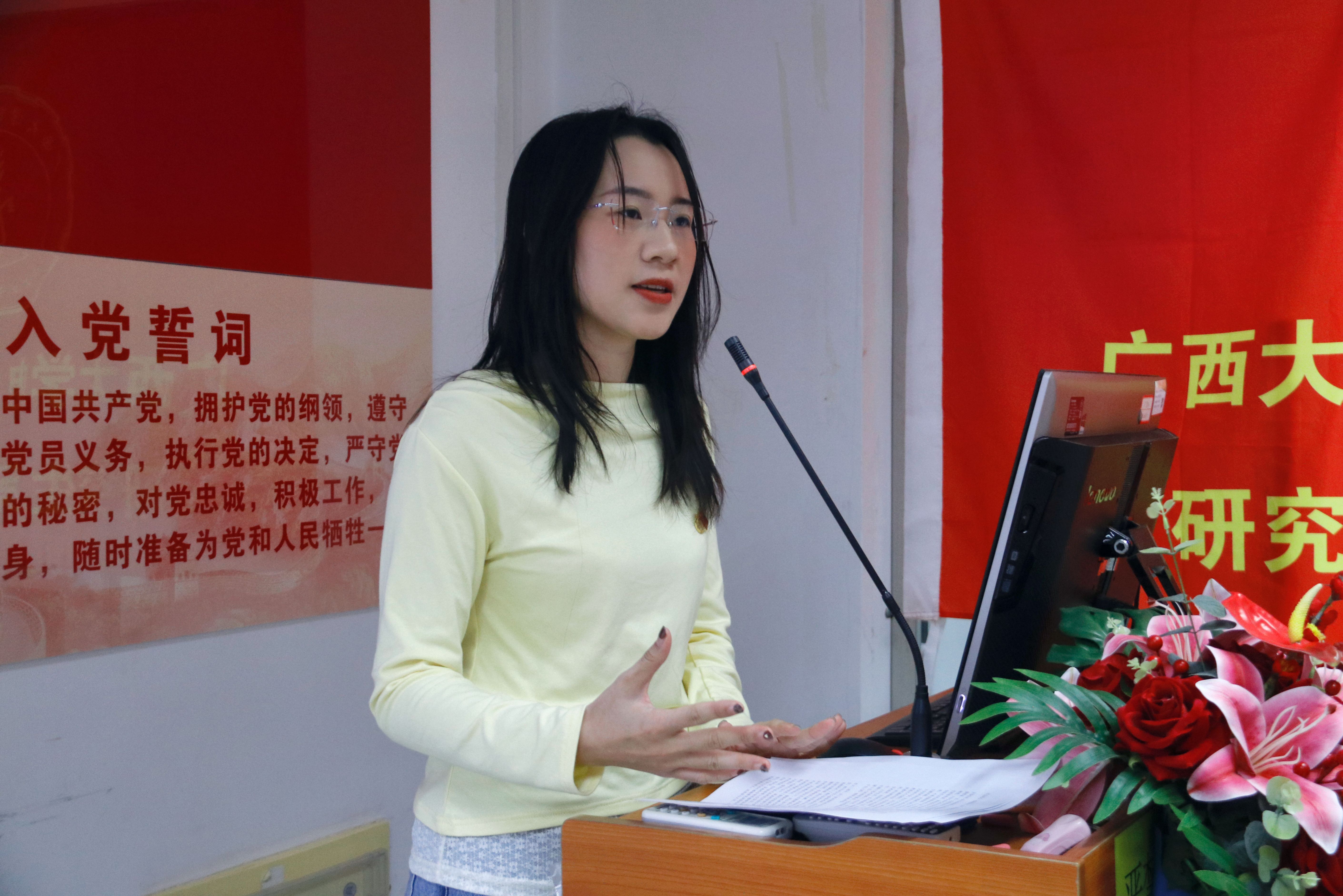 随后,研二支部的优秀学子为学员们分享了他们的求学经历,并结合个人成长故事,分析了学业规划与发展方向。张恒博士分享了自己在科研方面的宝贵经验,讲述了自己在科研道路上不断探索与突破的经历,激励同学们勇于追求学术梦想;莫书琴同学则介绍了自己从小到大的求学经历,分享了在求学过程中如何克服困难、不断成长的心路历程。