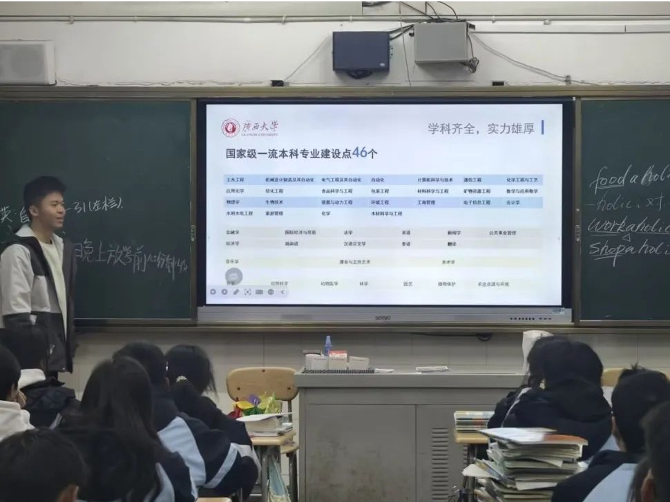 电自245班温曜旭回到了高中母校,开展ok138cn太阳集团529招生宣传活动。作为活动负责人,他设立了风雨棚宣讲点,解答高三学子的各类疑问;深入班级宣讲,分享大学生活与专业信息,激发同学们对未来的憧憬。他期盼更多学弟学妹报考ok138cn太阳集团529,共谱人生新篇,并决心持续为招生宣传助力,圆更多学子梦想。
