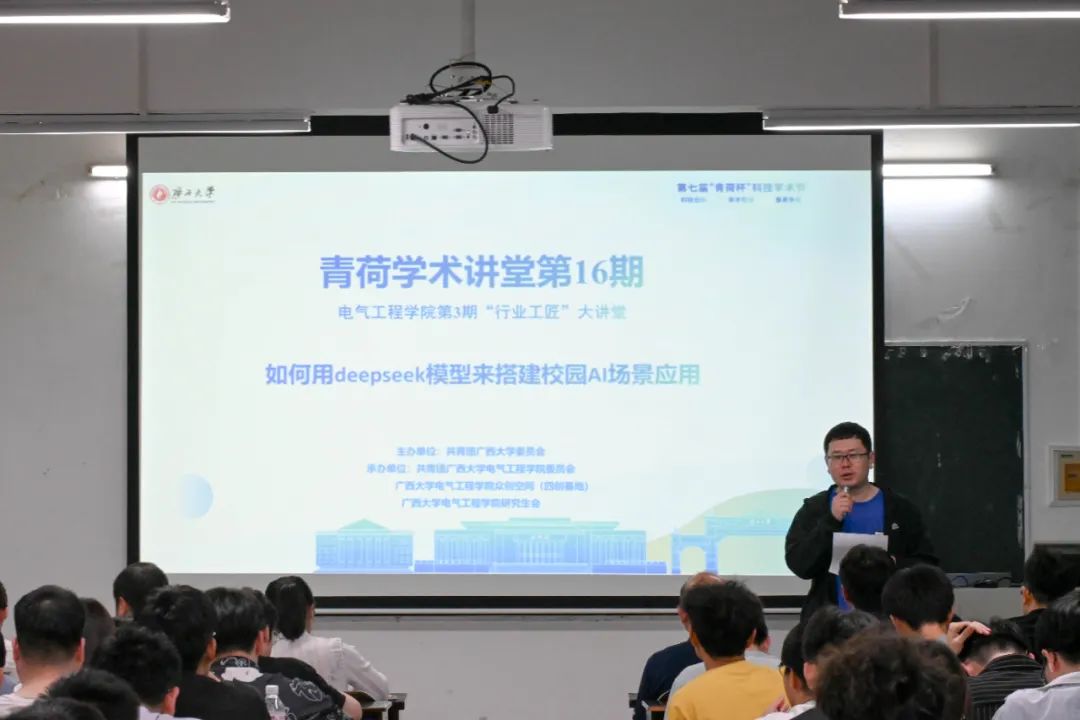 为引导同学们学习人工智能领域前沿,了解校园AI场景应用的搭建方法及其实践意义,3月27日晚上,由共青团ok138cn太阳集团529委员会主办,ok138太阳集团古天乐团委、众创空间联合承办的第16期青荷学术讲堂暨第3期ok138太阳集团古天乐“行业工匠”大讲堂在304教室举行。 此次讲座邀请到中国AI企业家百强年会行业导师张亮和广西码农信息科技有限公司技术总监何锋,为我院师生作题为“如何用DeepSeek模型来搭建校园AI场景应用”的讲座。讲座由学院兼职团委副书记李勇老师主持,本科生和研究生共计100余人参加活动。 张亮老师围绕AI通识、DeepSeek大模型简介及其本地化部署、校园场景下智能体的搭建与应用展开讲授。他首先从人工智能的发展历程切入,介绍了控制论、专家系统、机器学习、深度学习等关键技术突破的重要节点。他表示,近年来,OpenAI开发的ChatGPT引领了AI技术的新潮流,其基于大规模预训练语言模型(如GPT-3.5、GPT-4),展现了强大的自然语言理解与生成能力,推动了AI在人机交互、内容创作、教育等多个领域的应用。 随后,张亮老师详细阐述了AI在学习、办公、编程和职业发展中的实际作用和应用方式,并期待AI成为同学们校园生活的智能助手。 对于AI智能体与普通AI模型的区别,何锋老师展开了详细的讲解。他表示,普通的AI模型通常是被动响应用户的输入,而AI智能体则具备自主决策、长期记忆、任务规划等能力,能够在不同环境下执行更复杂的任务。例如,基于大语言模型(LLM)的智能体可以整合搜索、代码执行、自动化任务处理等功能,使其具备更强的自主性和交互能力。 在深入探讨AI智能体的实际应用后,何锋老师向大家展示了DeepSeek AI的本地部署方式。同时介绍了如何结合Ollama等工具,在本地高效部署DeepSeek,并详细讲解了如何根据电脑硬件的能力选择合适的 DeepSeek 版本,以优化推理性能。 本期青荷学术讲堂暨第3期ok138太阳集团古天乐“行业工匠”大讲堂,不仅拓展了同学们解决工程问题的视野和思路,更通过产学研深度融合的方式进一步明晰了行业技术发展方向,为同学们未来的专业学习与职业发展提供前瞻性指引。