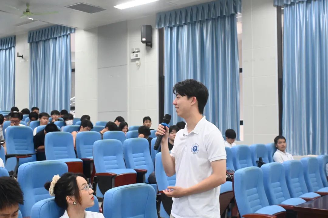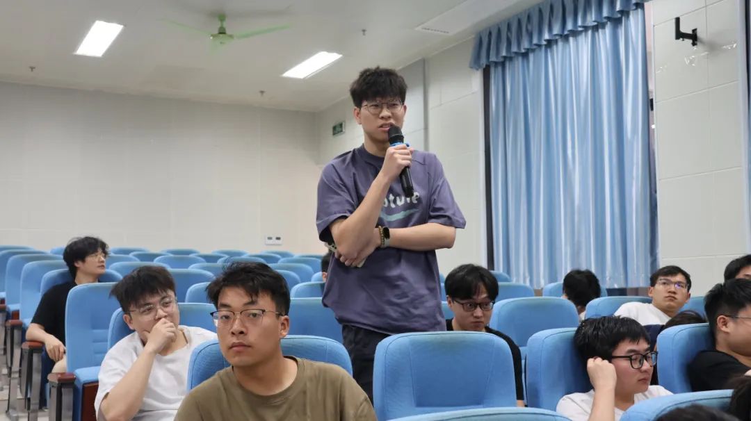 在交流环节中,同学们围绕科研、求职和学习心态等问题踊跃提问。分享人们结合自身经历耐心解答,现场气氛热烈。