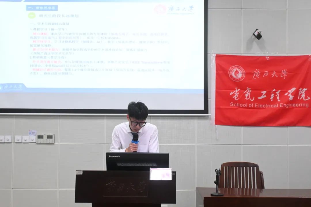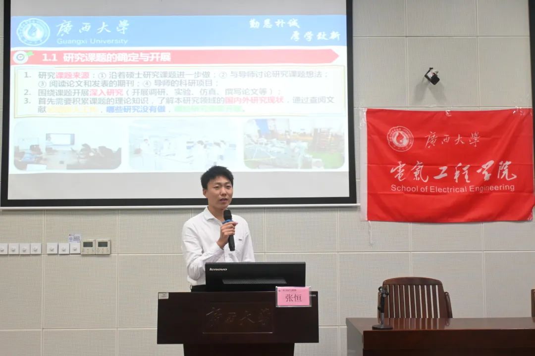 获评2023年“广西最美大学生”及2025年自治区优秀毕业生的张恒同学,根据自己的读博生涯,给同学们分享了高效的学习方法、文献阅读以及科研过程中的个人感悟,为有意深造的同学展现了一个清晰的学术图景。