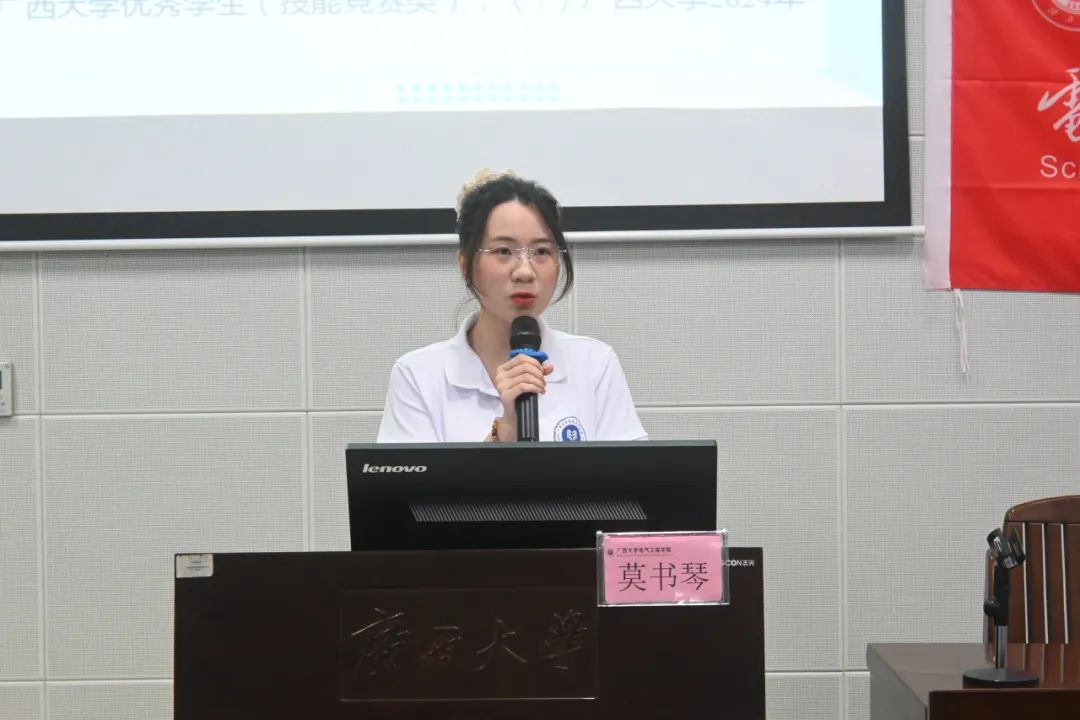 莫书琴同学在进行经验分享