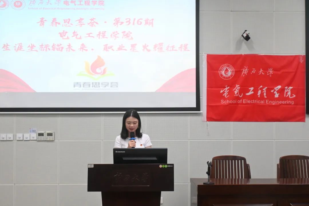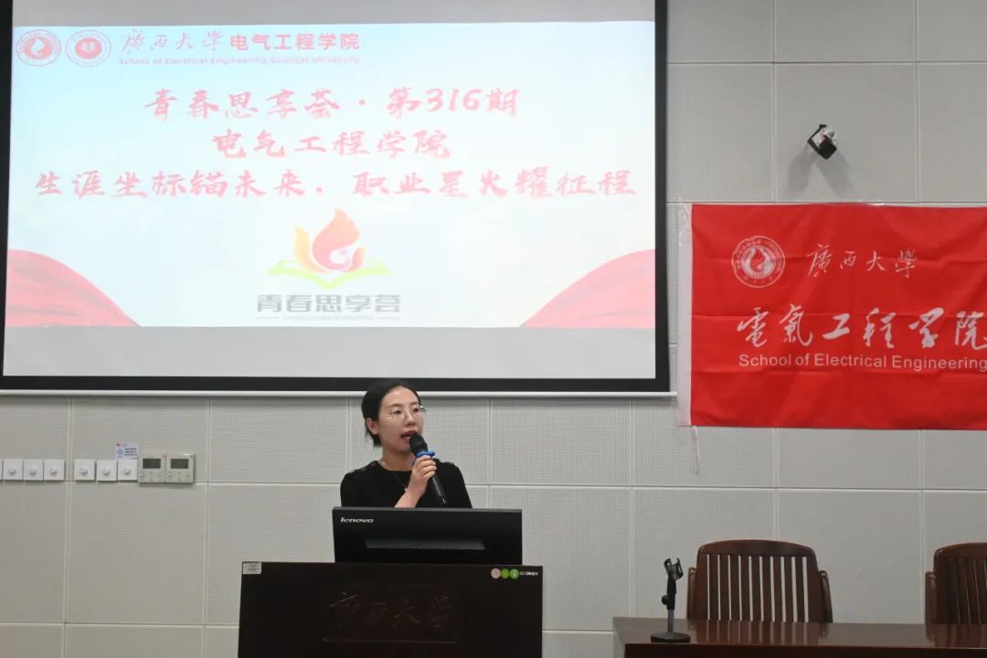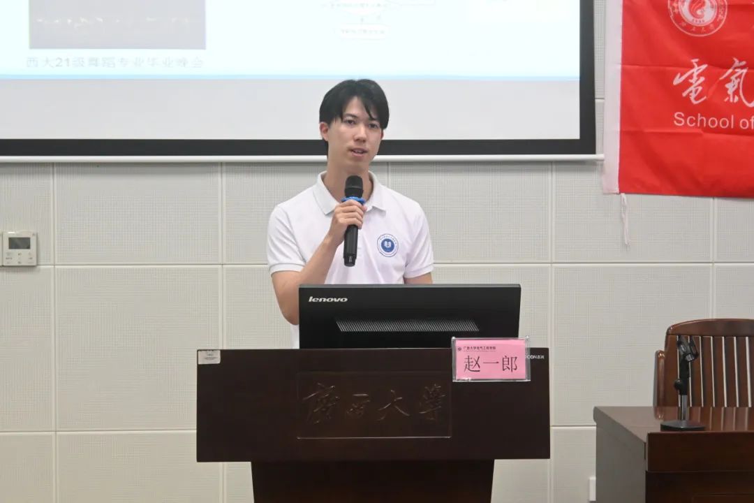 李琼莹副书记介绍了学院在2025届学生升学及基层就业方面的表现。她表示,学院十分重视青年生涯规划,举办相关主题沙龙,发挥榜样力量,旨在为同学们的成才成长提供有力支持,希望同学们将个人理想融入国家发展,为实现中国式现代化贡献电气学子的青春力量。