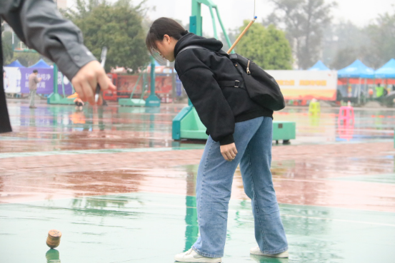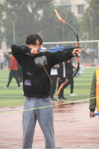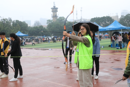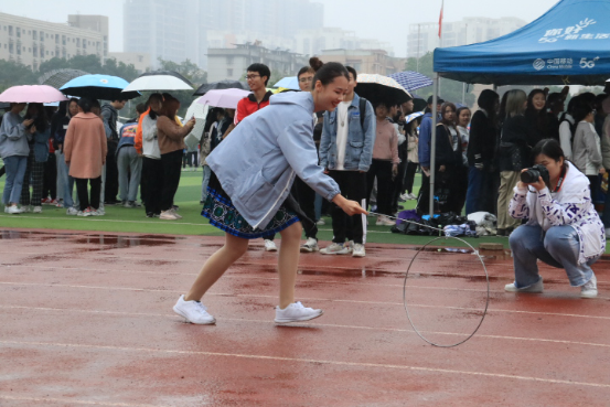 张大威同学说:“虽然下着蒙蒙细雨,但没有浇灭同学们的热情,每个项目的队伍都排得长长的,丢绣球也不例外。我排了许久的队,扔了三次,一个也没中。确实有点难度,要是再给我一次机会的话,我还是不会中的。