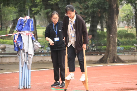 杨琬婷同学说:“踩高跷是一种民俗文化,流行于民间表演和游乐,有很多同学积极参与游戏,非常受大家欢迎。该游戏分为五人小组,充分考验了大家的团结协作,大家以各式各样的姿势撑着高跷前行,技巧性极强,同伴在周围加油助威,还有许多同学前来围观并且跃跃欲试,场面十分热闹。”