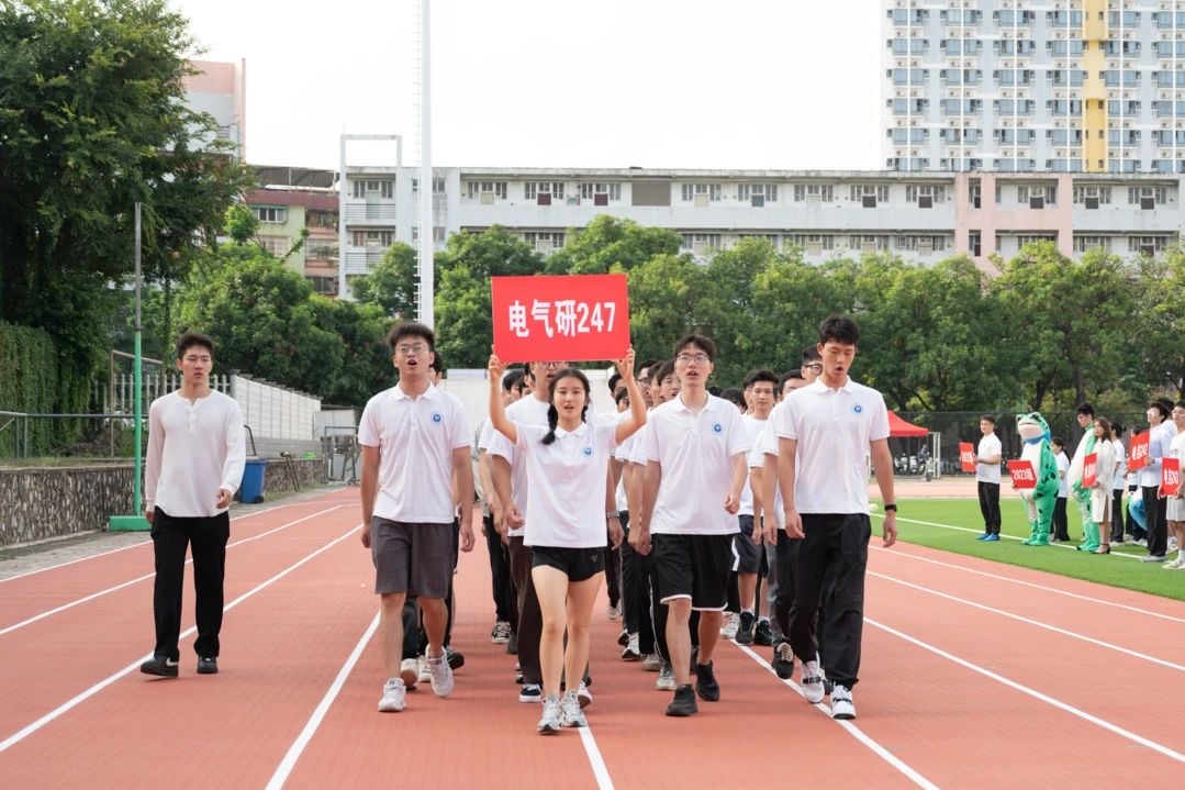 这是一支由党员所组成的方阵,他们身着统一服装,胸前的党徽在阳光下熠熠生辉,那是信仰的光芒,是责任的象征,他们展现了新时代党员的风采和力量。他们将在接下来的各项赛事中,用实际行动诠释电气学院的光荣传统——坚韧不拔、追求卓越。