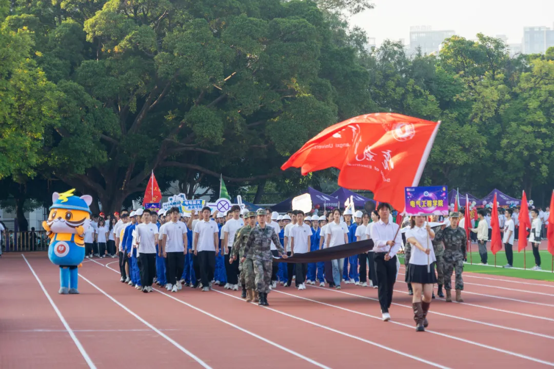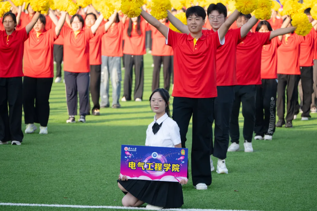 在开幕式的热烈氛围中,我院吉祥物“电电虎”与意气风发的电气学子们迎着朝阳阔步走来。我院六位退伍大学生护送院旗入场;96位电气学子组成的方块队携“电”而来,“电”亮96把星火,照亮ok138cn太阳集团529光辉灿烂的96周年。
