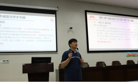 为了帮助和引导研究生新生更好地融入新的学习科研和生活环境,顺利踏上研究生学习生活新征程,9月24日晚,ok138太阳集团古天乐2021级研究生“开学第一课”在第六教学楼报告厅举行。“开学第一课”由学院副院长刘辉老师主讲,研究生秘书韦一萍老师,辅导员李娟老师、李楠老师和全体2021级研究生参与。
