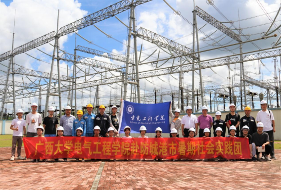 同时,实践团重点参观500kV海港变电站,了解到它们为防城港经济快速发展提供的电力保障、提高电网供电可靠性、供电质量的作用及地位。