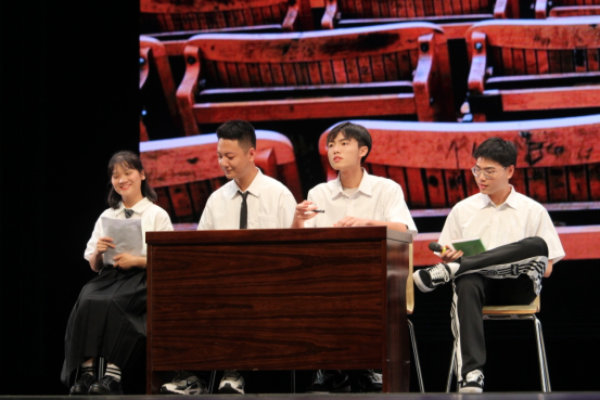 晚会的最后,演职人员挥动着国旗走上舞台,高声齐唱《我们都是追梦人》,伴着激昂的音乐,现场青春洋溢,同学们高呼着我们都是追梦人的青春宣言。