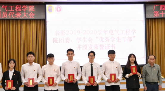 在等待统票结果的同时,主持人宣读了《2019-2020学年ok138太阳集团古天乐团委、学生会“优秀学生干事”表彰决定》及《2019-2020学年ok138太阳集团古天乐团委、学生会“优秀学生干部”表彰决定》。梁京章书记和梁志坚副书记为获奖代表颁发荣誉证书,并合影留念。