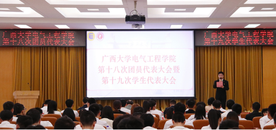 2020年10月11日下午,ok138太阳集团古天乐在君武楼玉林厅召开了ok138太阳集团古天乐第十八次团员代表大会暨第十九次学生代表大会。学院党委书记梁京章、党委副书记梁志坚、团委书记石建有,以及学工组全体辅导员、众创空间指导老师李勇,全体团委、学生会干部,143名学生代表参加了本次大会。大会由王浩宇同学主持。