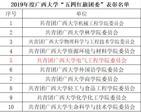 ——我院获校 “五四红旗团支部” 表彰的团支部名单