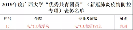 ——我院张哲同学获校“优秀共青团员(新冠肺炎疫情防控专项)”称号